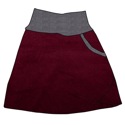 Damen Cordrock / falscher Wickelrock Cord Beere / Dunkelgrau