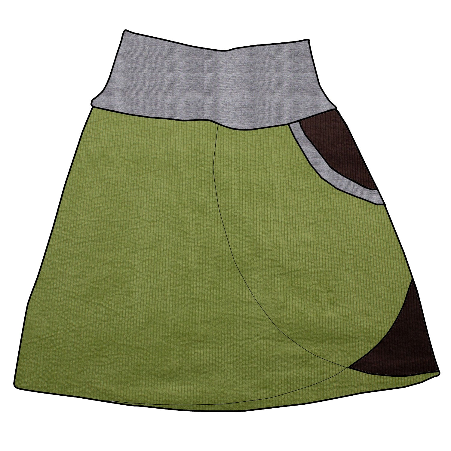 Damen Cordrock / falscher Wickelrock Cord Apfelgrün / Schokobraun