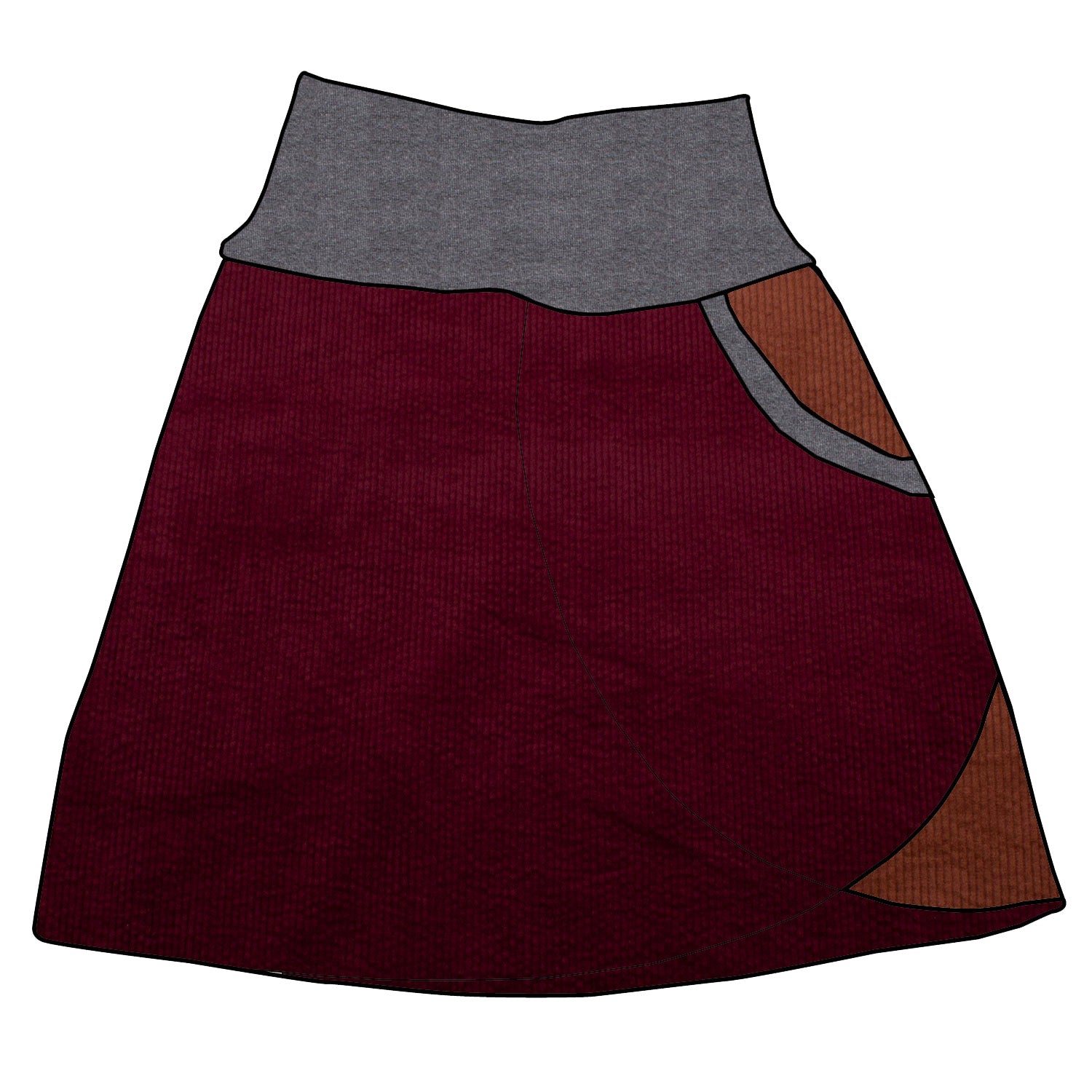 Damen Cordrock / falscher Wickelrock Cord Beere / Braun