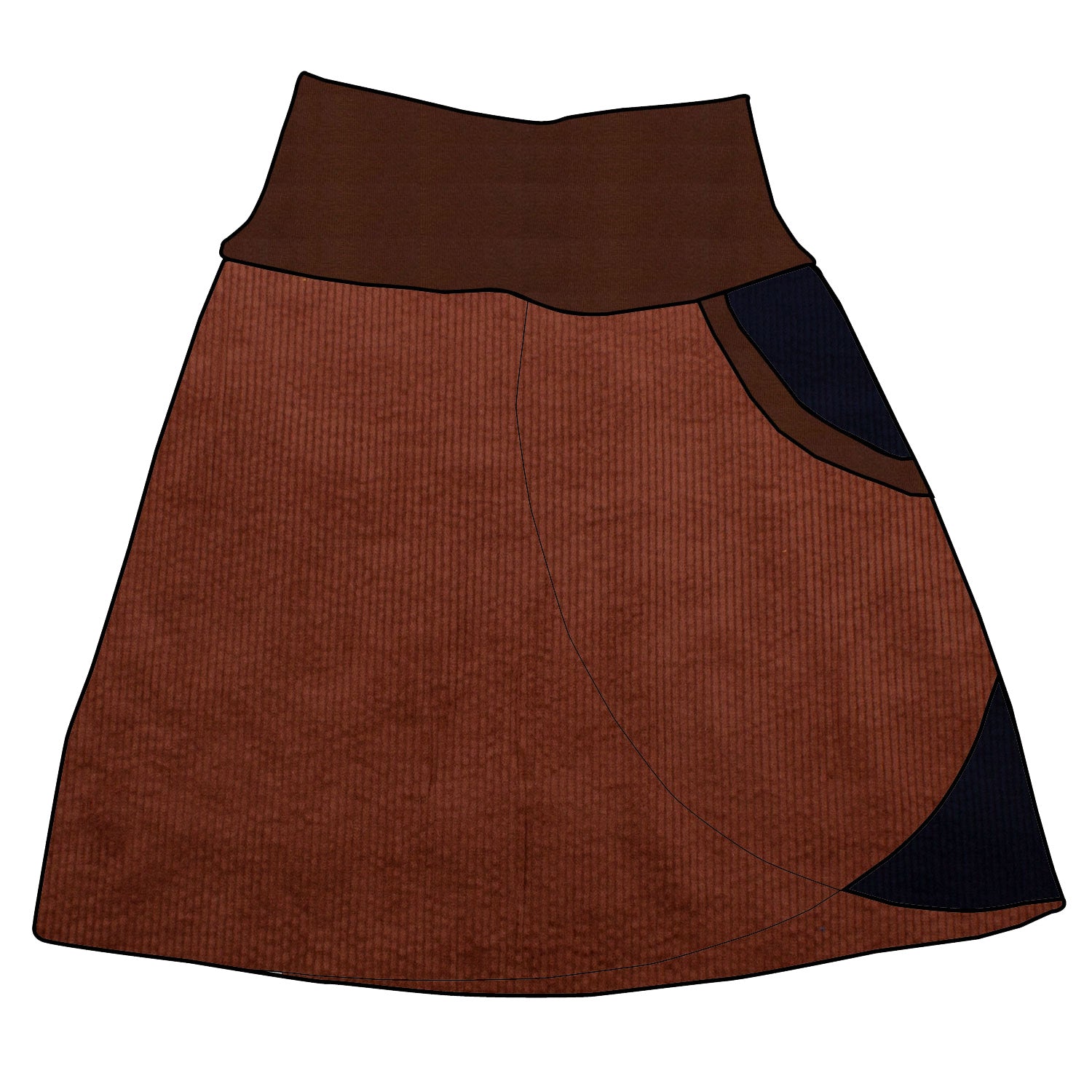 Damen Cordrock / falscher Wickelrock Cord Braun / Dunkelblau