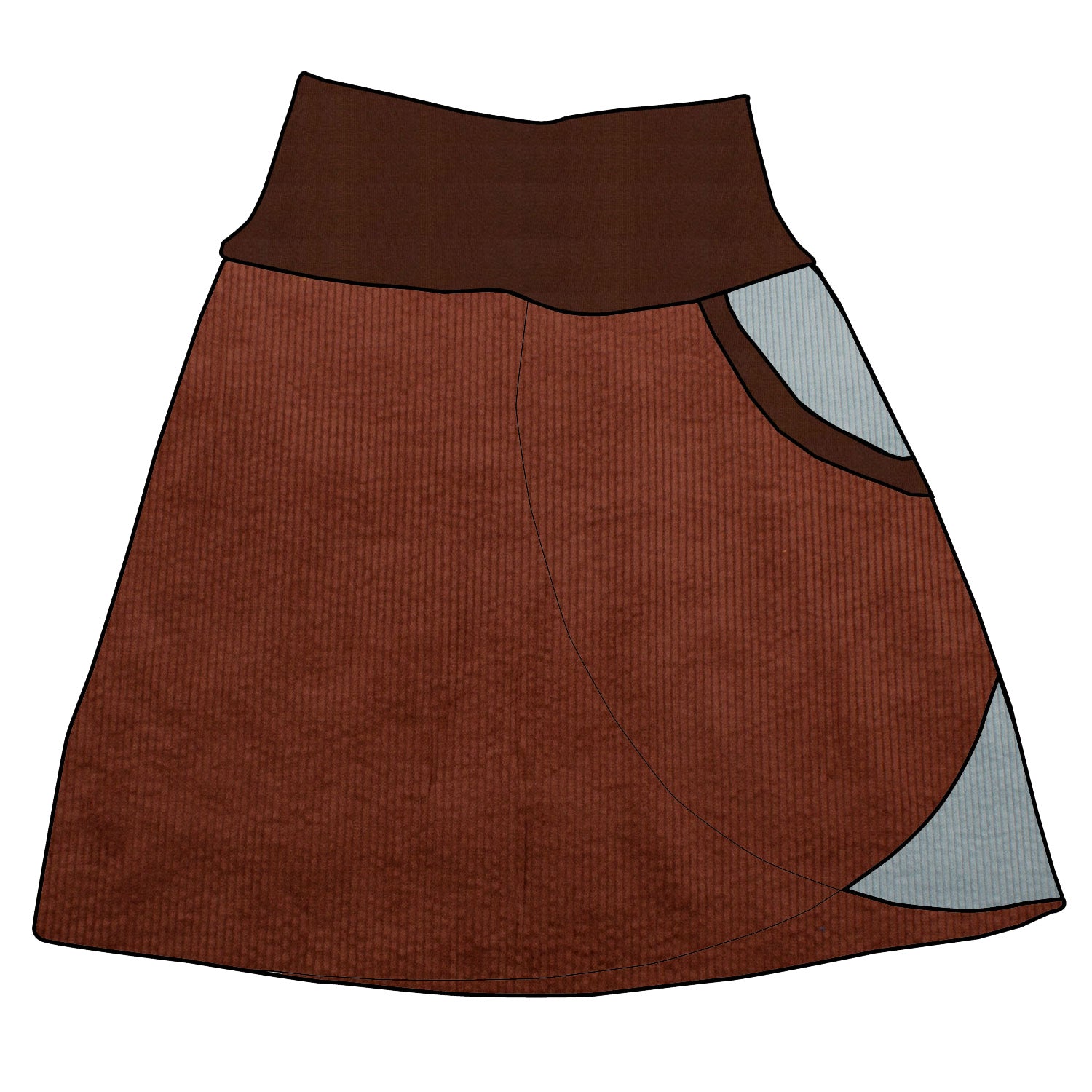 Damen Cordrock / falscher Wickelrock Cord Braun / Eisblau