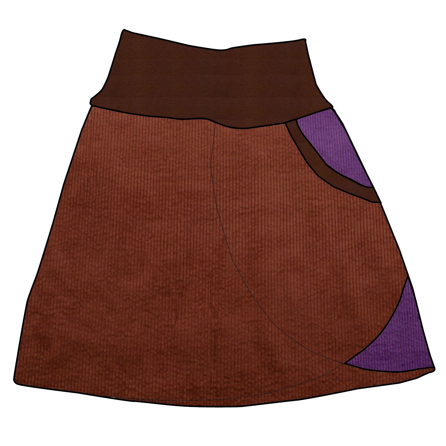 Damen Cordrock / falscher Wickelrock Cord Braun / Lila