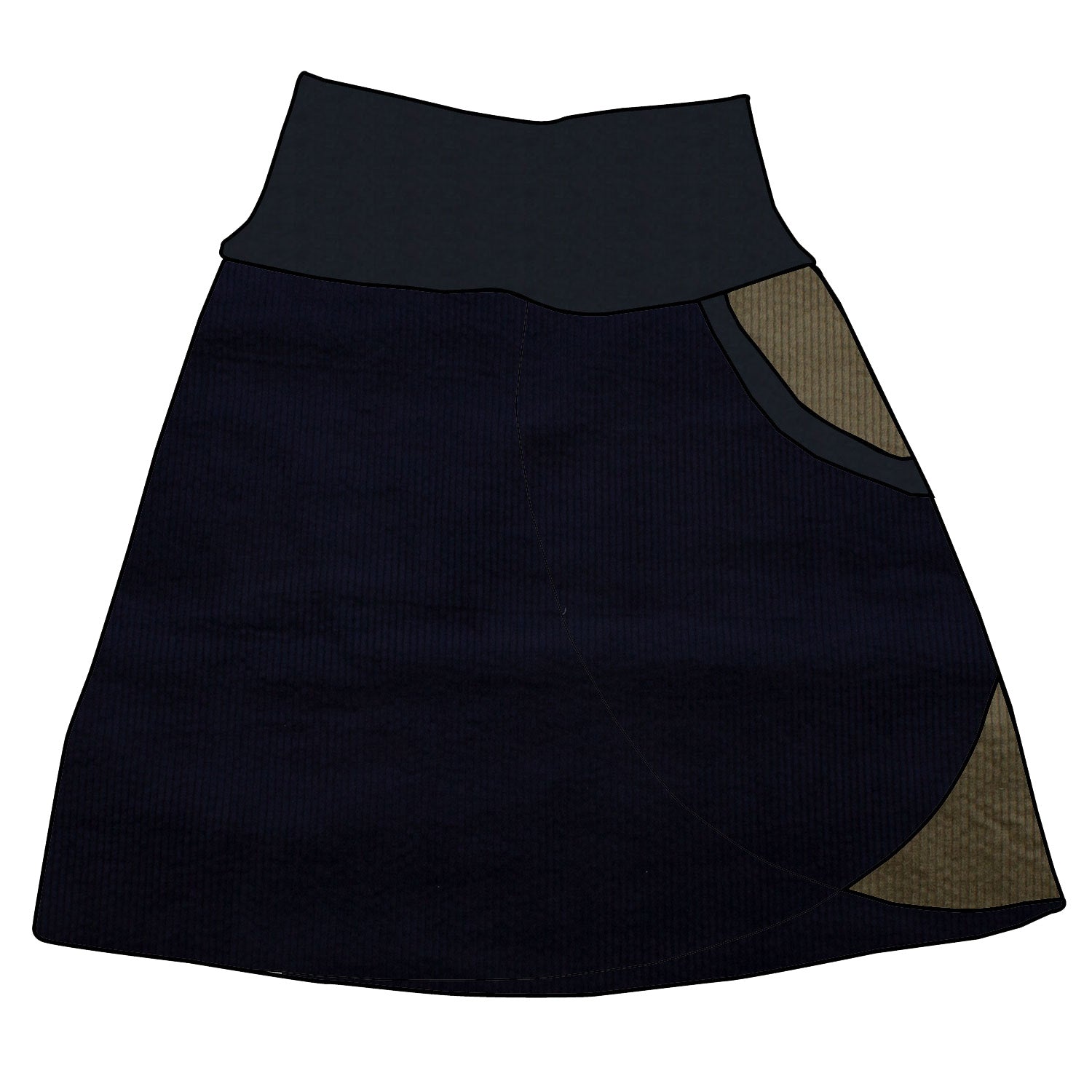 Damen Cordrock / falscher Wickelrock Cord Dunkelblau / Khaki