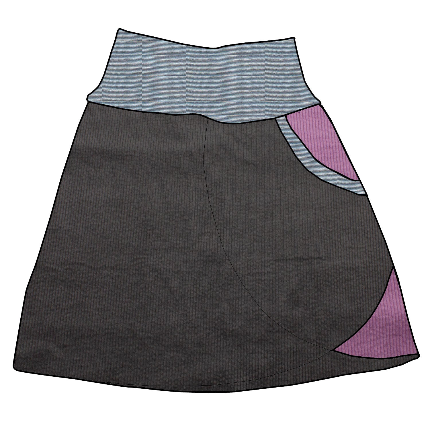 Damen Cordrock / falscher Wickelrock Cord Dunkelgrau / Flieder