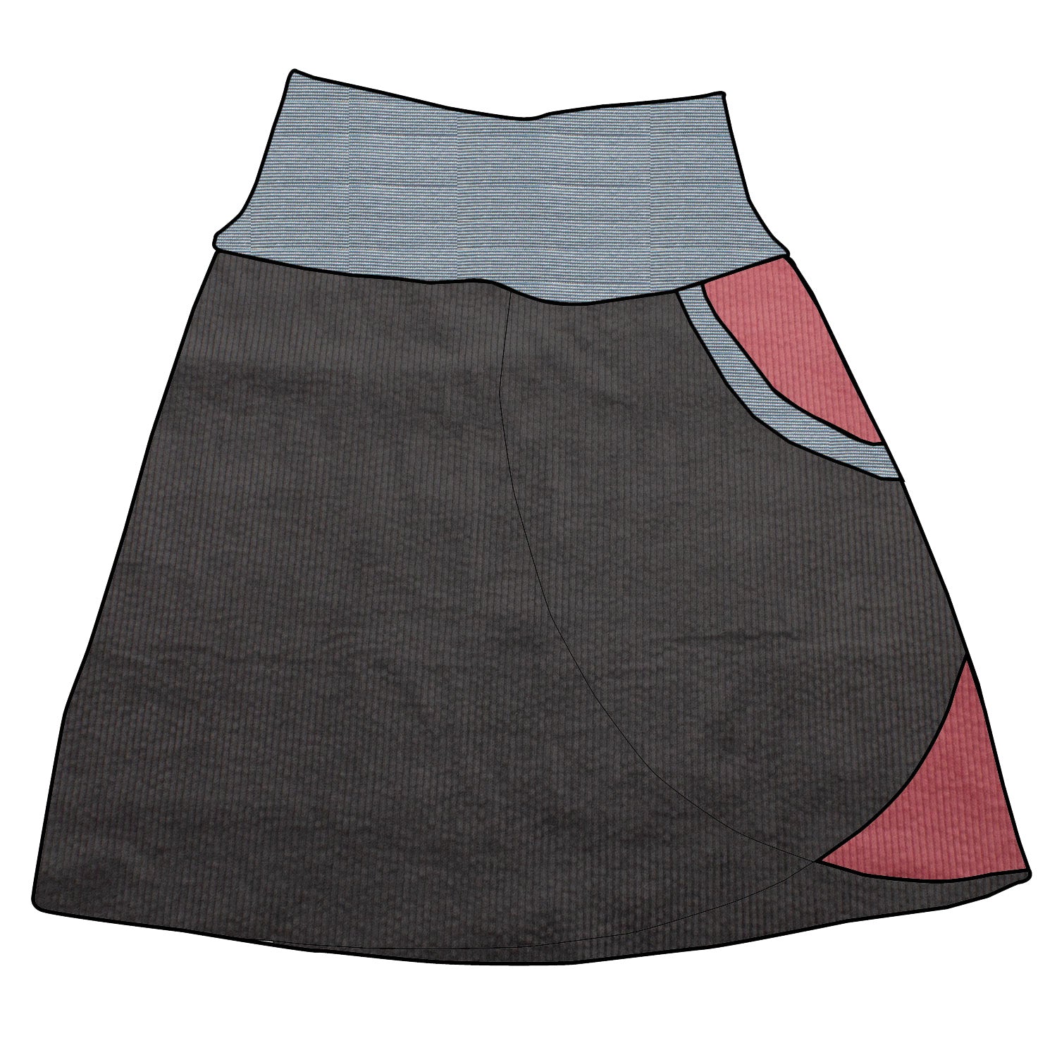 Damen Cordrock / falscher Wickelrock Cord Dunkelgrau / Rosa