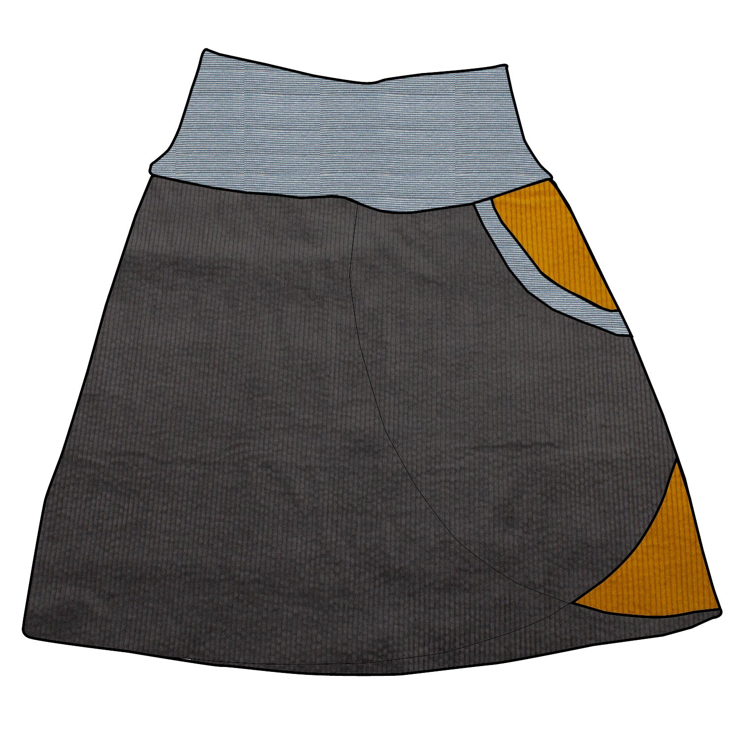 Damen Cordrock / falscher Wickelrock Cord Dunkelgrau / Senf
