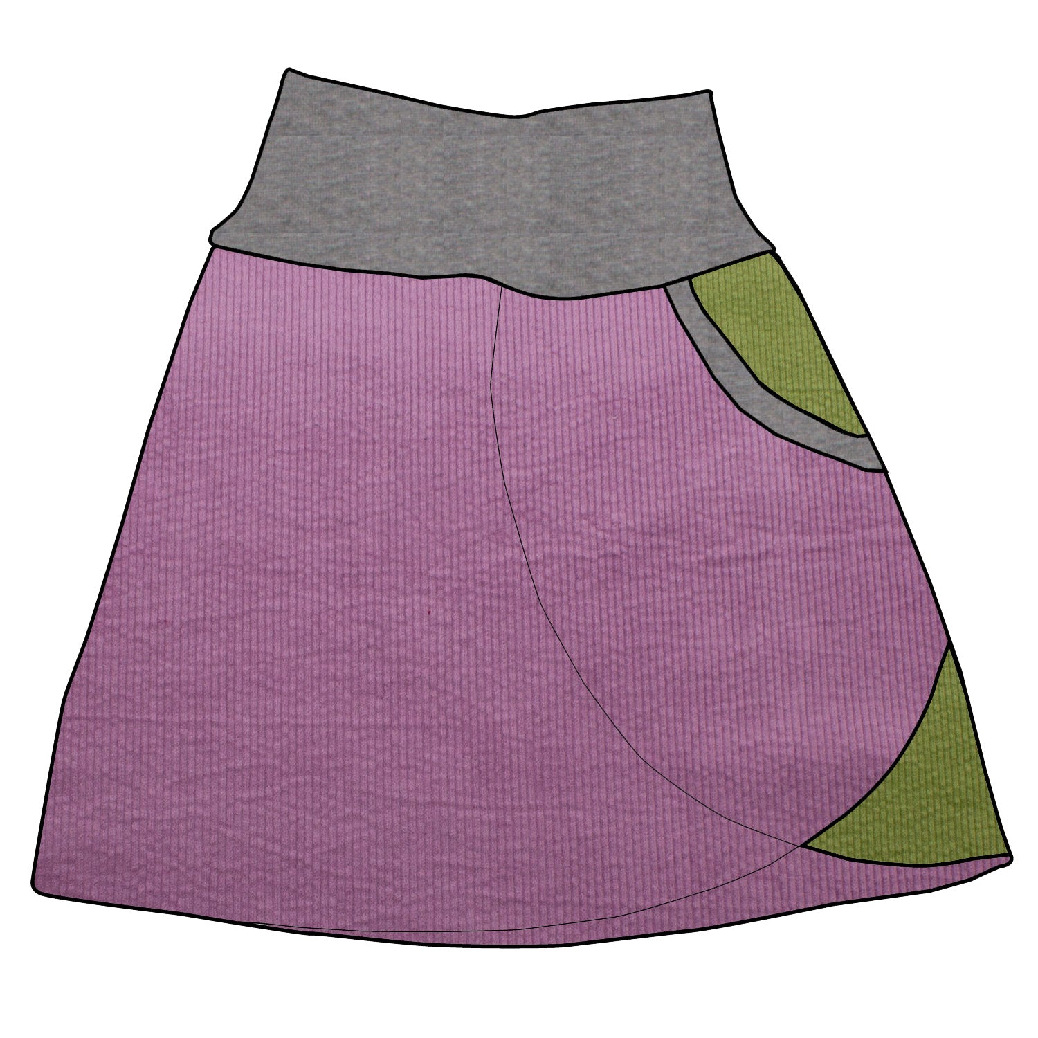 Damen Cordrock / falscher Wickelrock Cord Lila / Apfelgrün