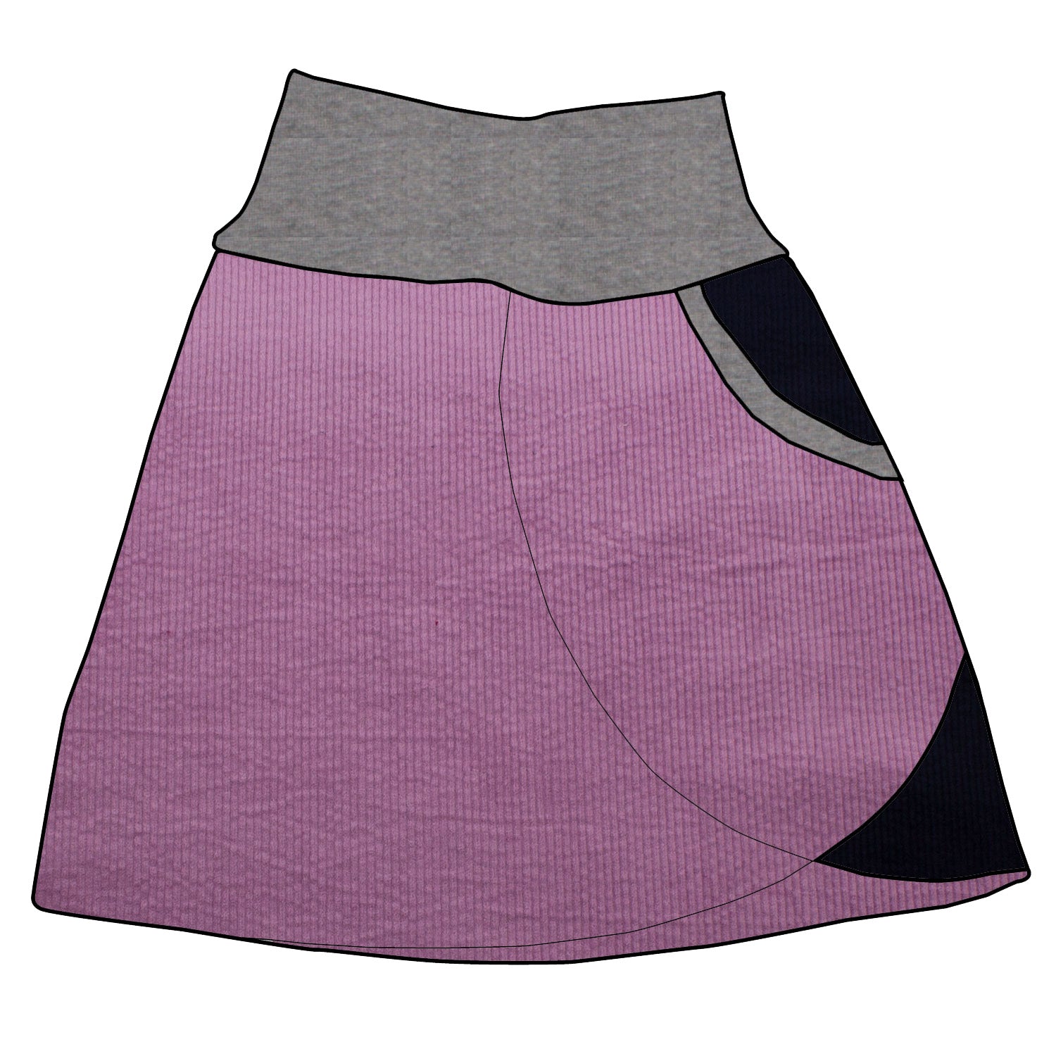 Damen Cordrock / falscher Wickelrock Cord Lila / Dunkelblau