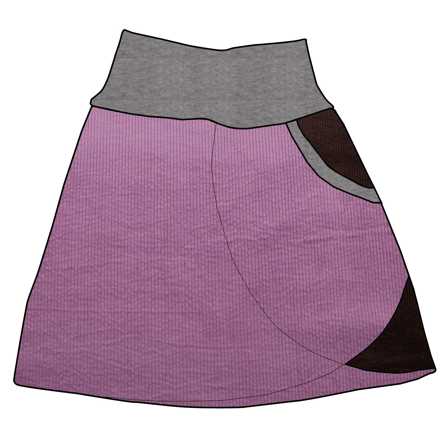 Damen Cordrock / falscher Wickelrock Cord Lila / Schokobraun
