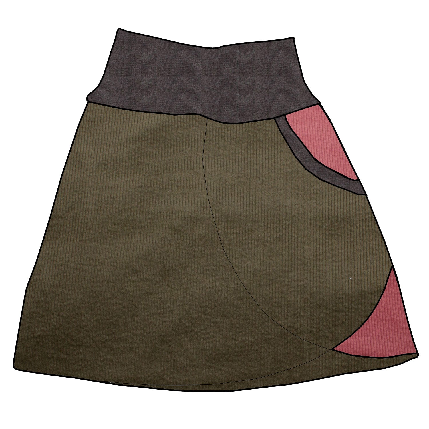 Damen Cordrock / falscher Wickelrock Cord Khaki / Rosa