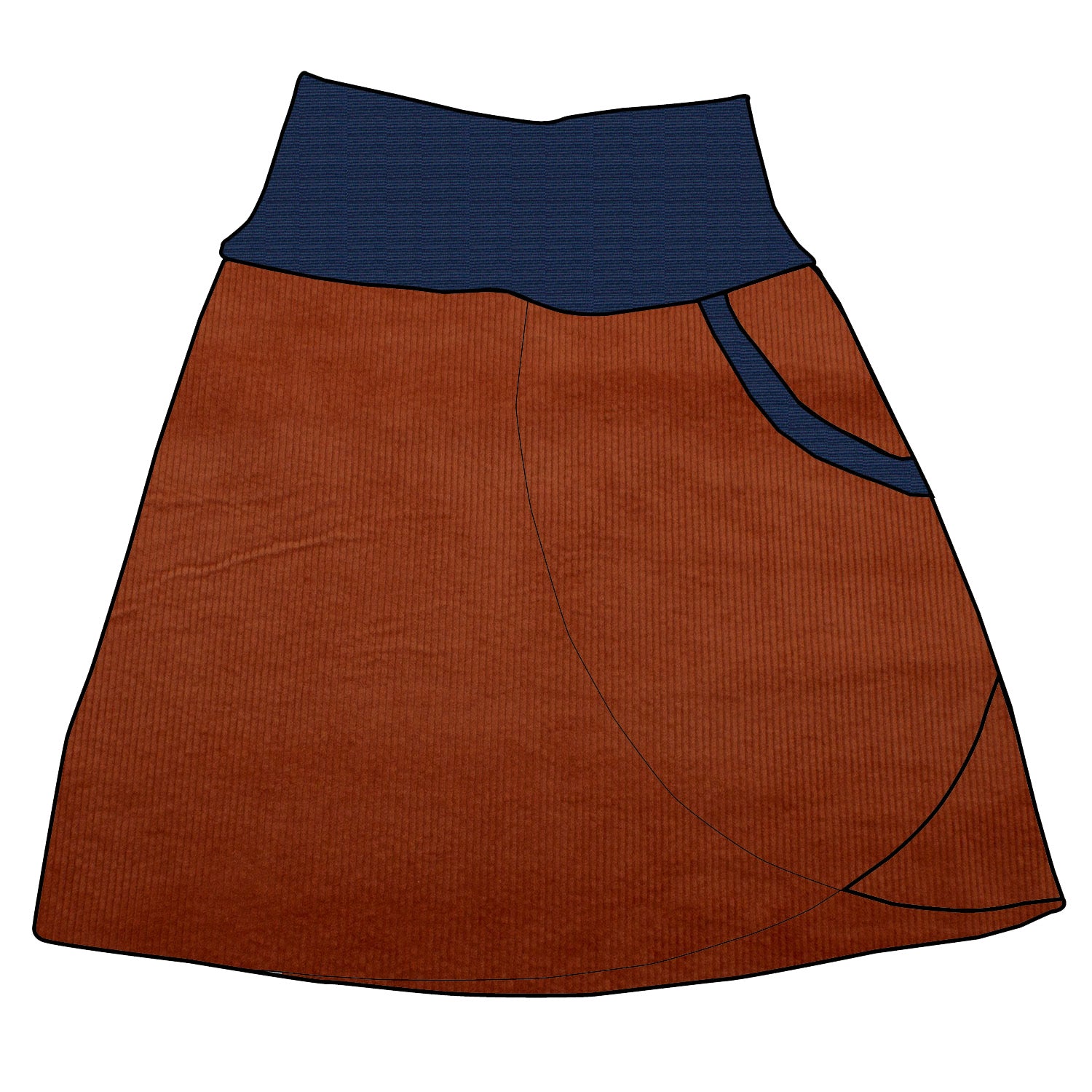 Damen Cordrock / falscher Wickelrock Cord Rostrot / Rostrot