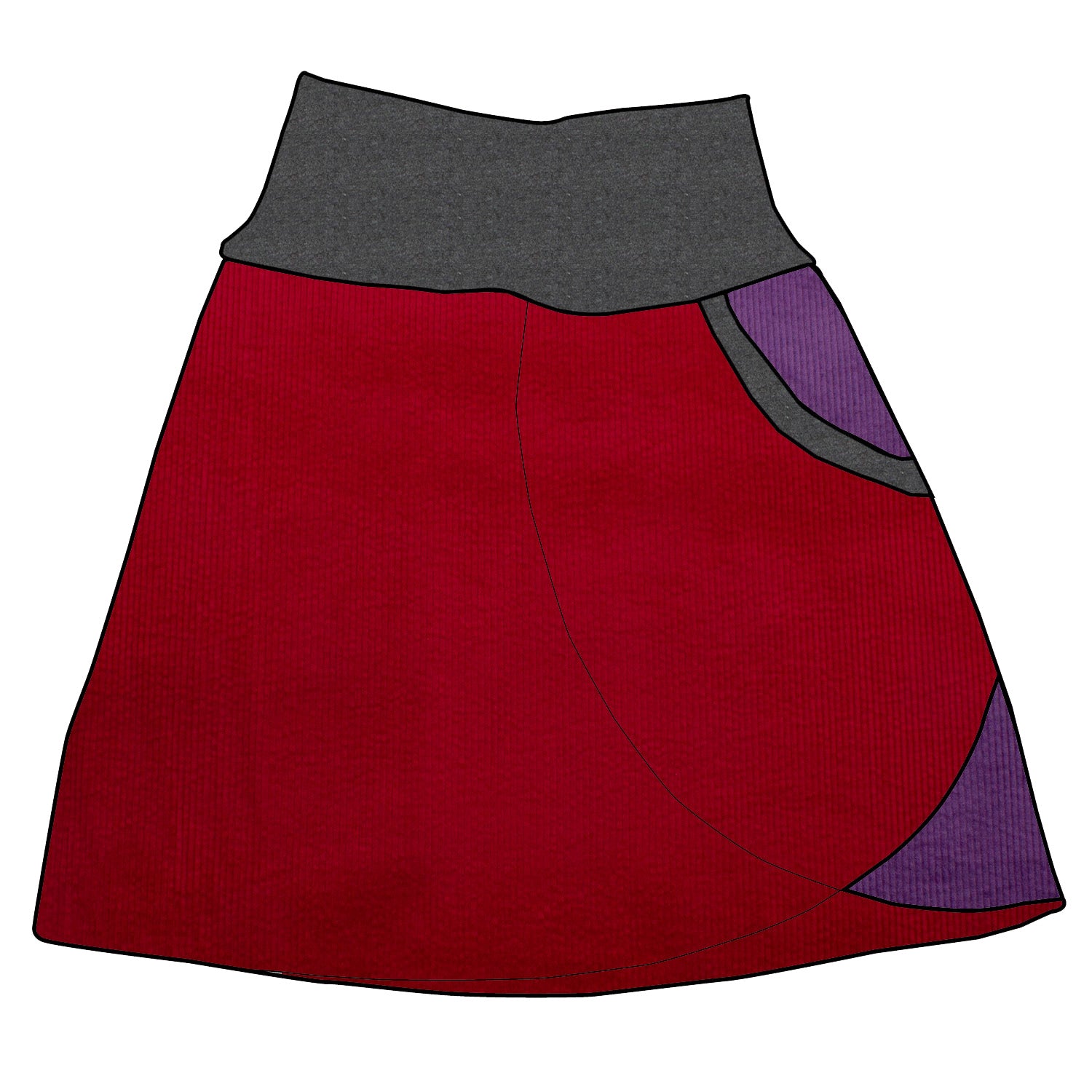 Damen Cordrock / falscher Wickelrock Cord Rot / Lila