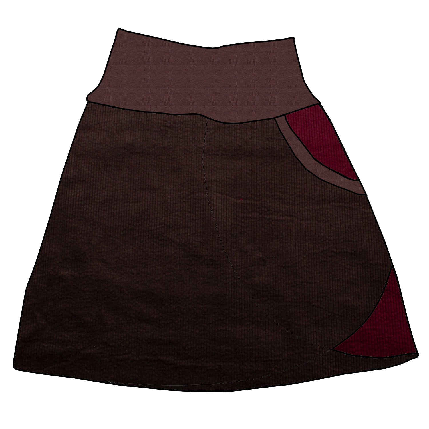 Damen Cordrock / falscher Wickelrock Cord Schokobraun / Beere