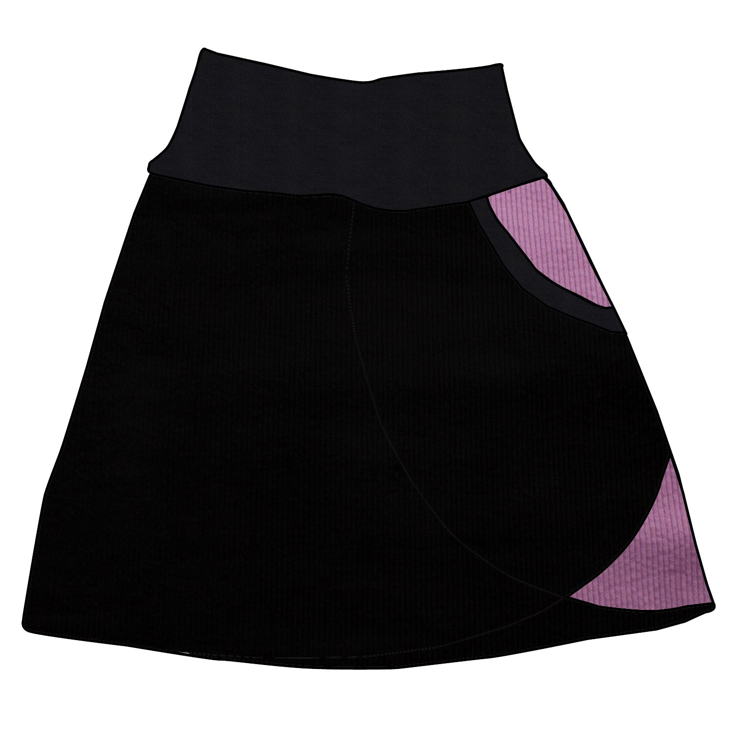 Damen Cordrock / falscher Wickelrock Cord Schwarz / Flieder