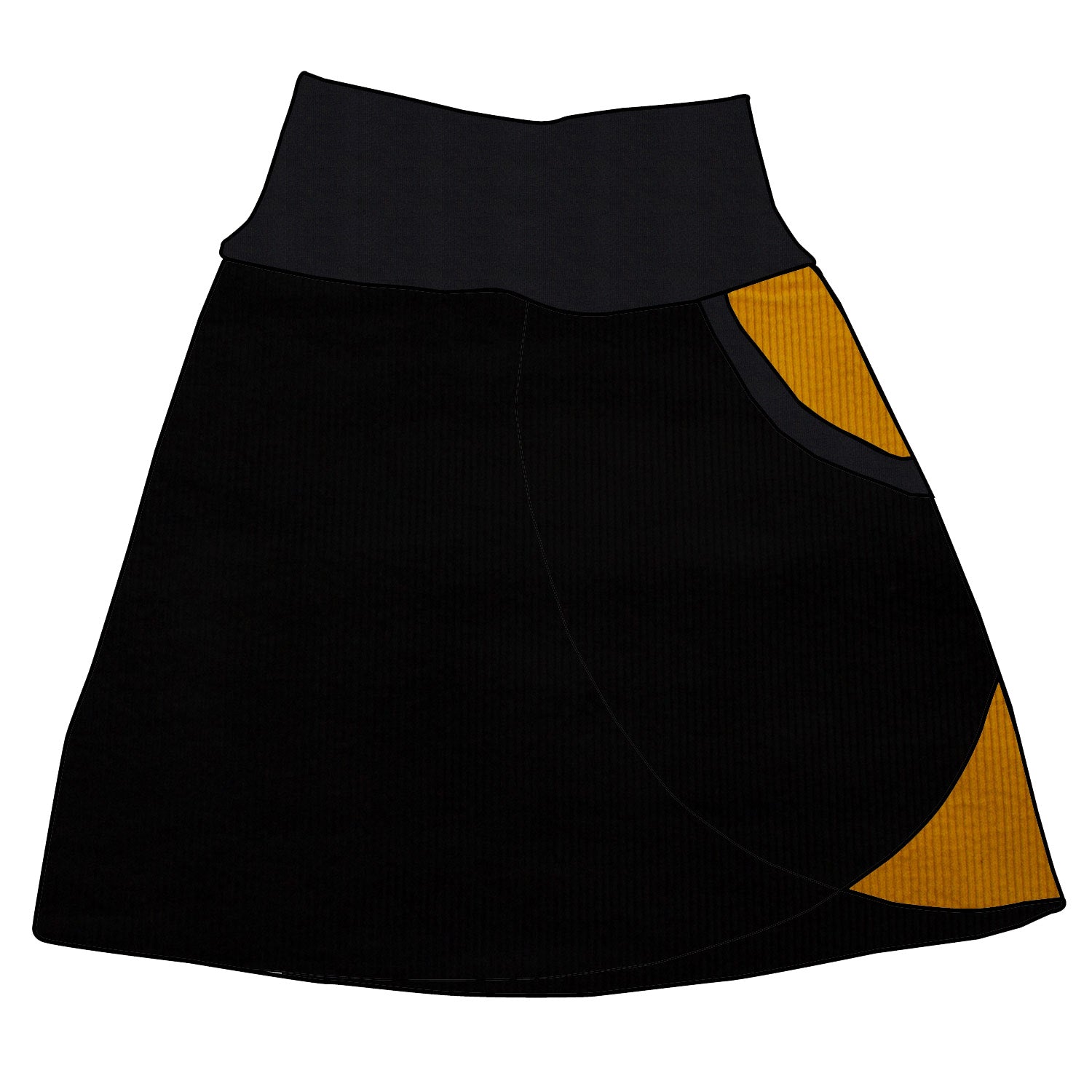 Damen Cordrock / falscher Wickelrock Cord Schwarz / Senf