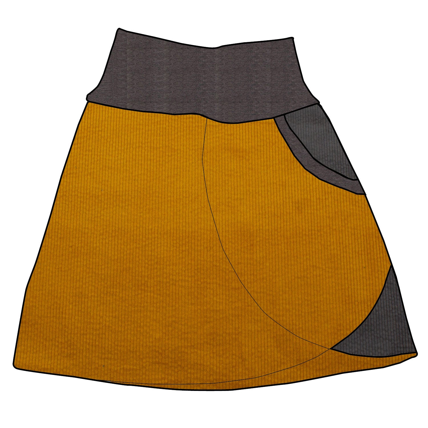 Damen Cordrock / falscher Wickelrock Cord Senf / Dunkelgrau