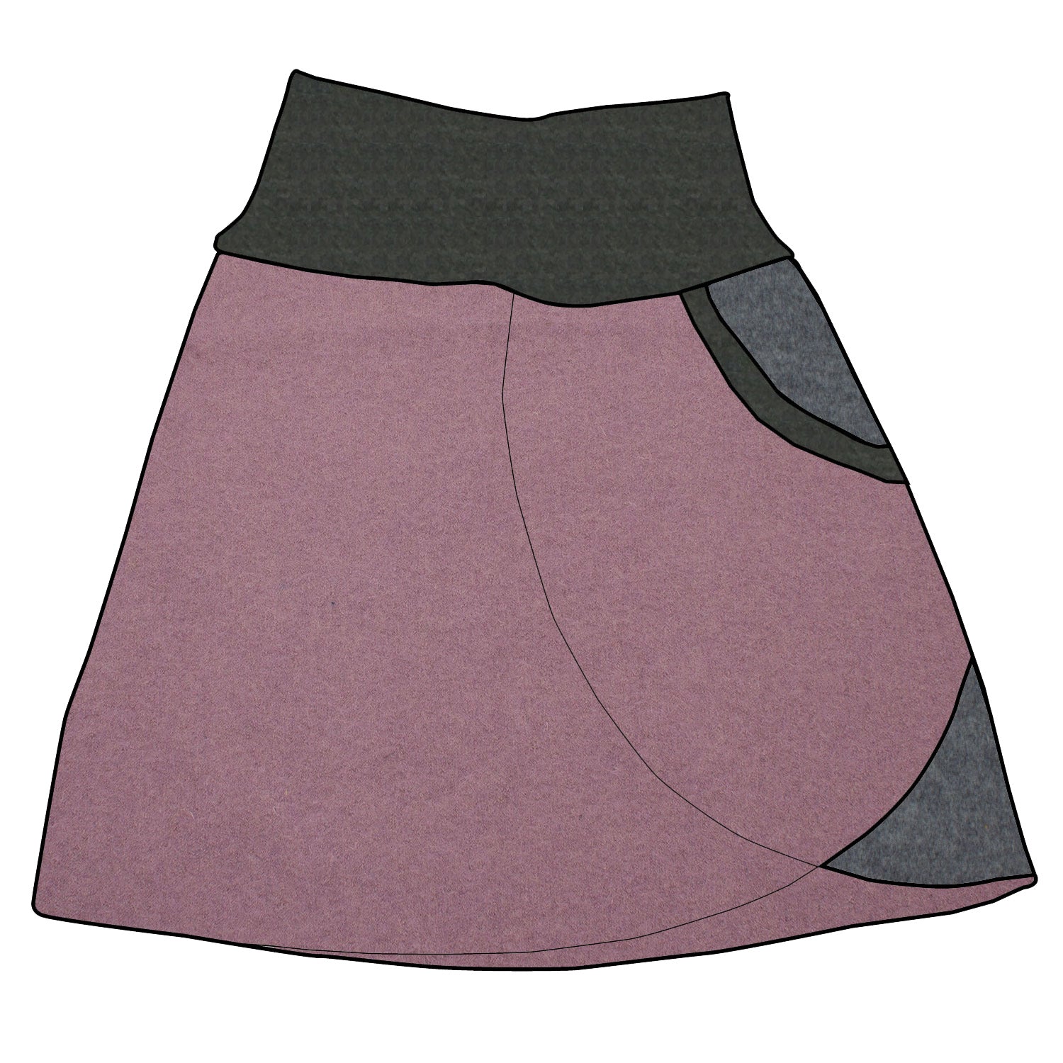 "Unser Damen falscher Wickelrock in Altrosa, gefertigt aus feinem Walkstoff, ist der ideale Begleiter von Frühling bis Winter. Erhältlich in den Größen 34 bis 48, bietet er auch die Option, die Kombifarbe der Taschenseite individuell zu wählen."