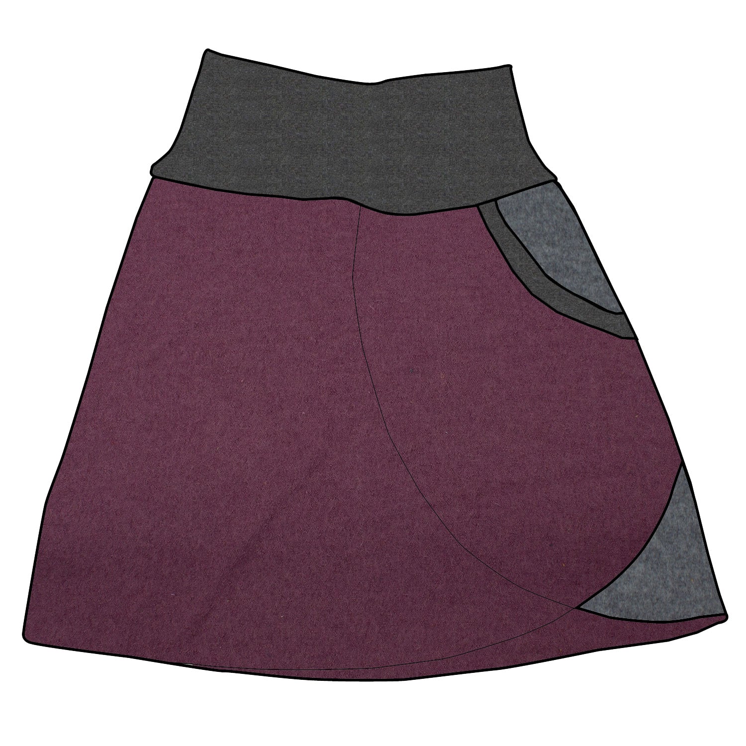 Der Rock war aus wärmeregulierendem Wollwalk gefertigt, wasserabweisend und strapazierfähig. Sein elastisches Bauchbündchen sorgte für einen extrem hohen Tragekomfort, und die große Tasche bot Platz für allerlei Schätze, die die Damen im Zauberwald sammelten.