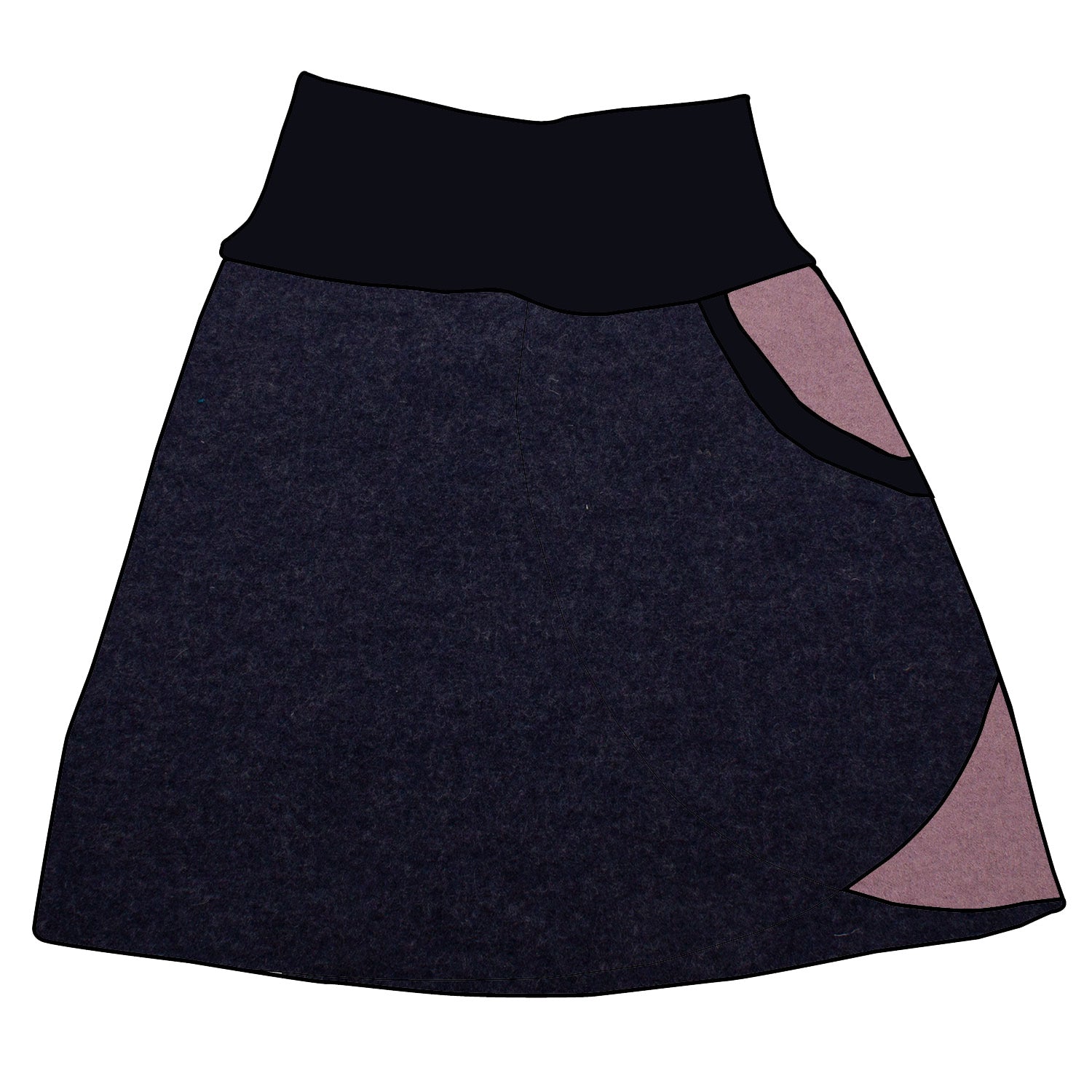 Damen Walkrock / falscher Wickelrock Walk Dunkelblau meliert / Altrosa