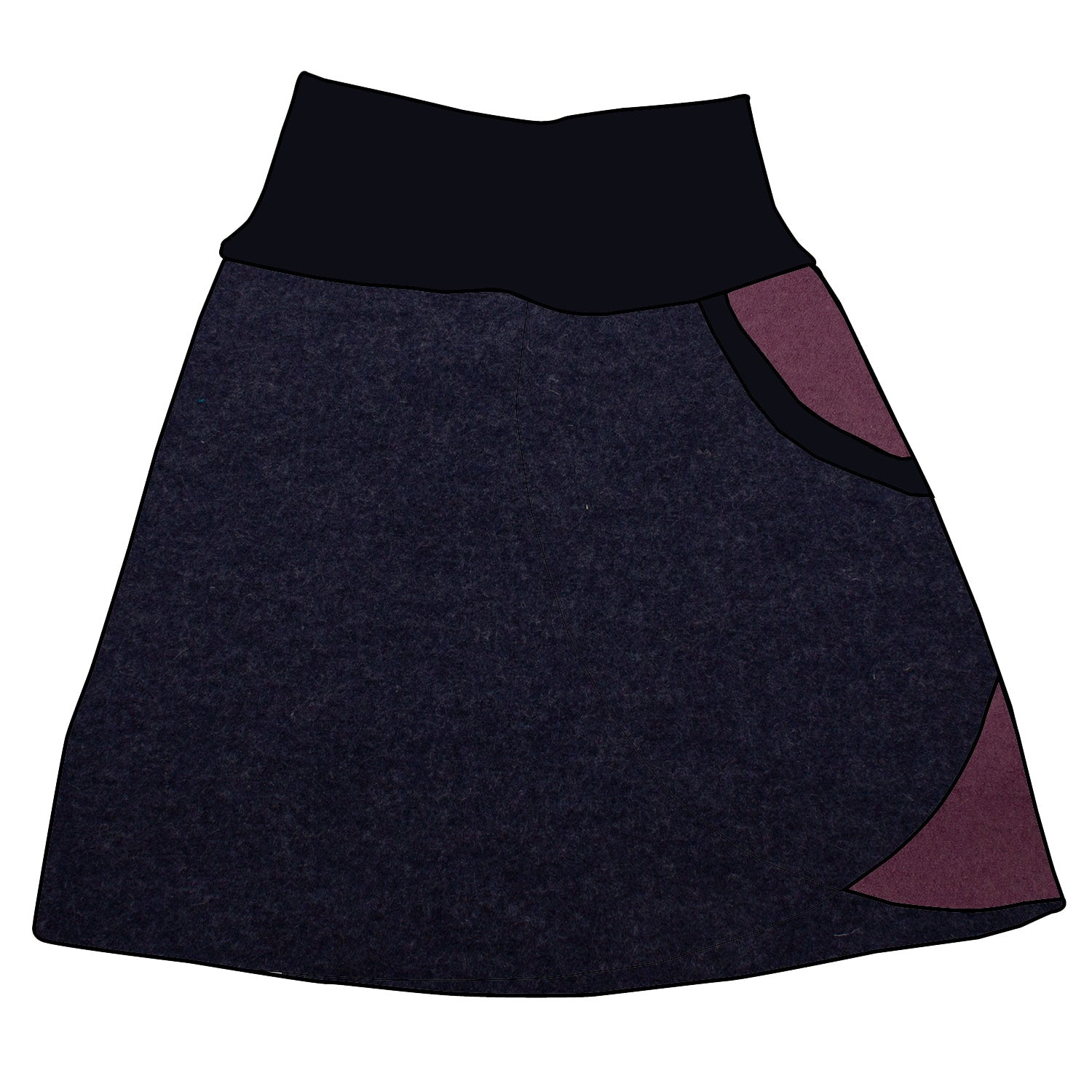 Damen Walkrock / falscher Wickelrock Walk Dunkelblau meliert / Beere