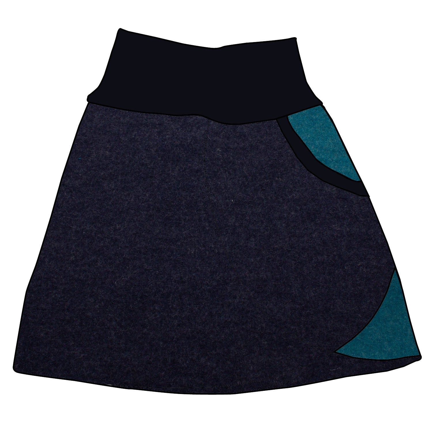 Damen Walkrock / falscher Wickelrock Walk Dunkelblau meliert / Petrol meliert