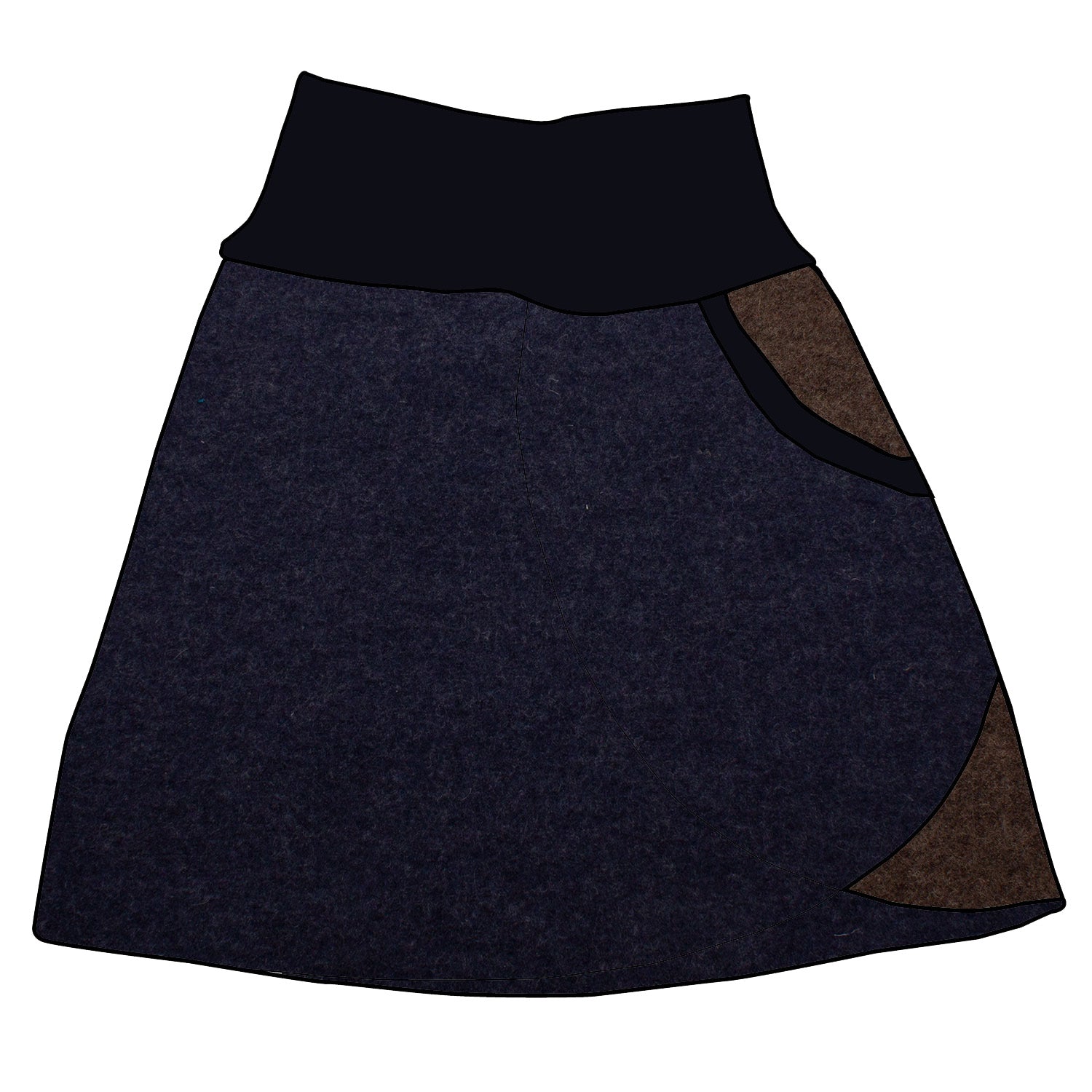 Damen Walkrock / falscher Wickelrock Walk Dunkelblau meliert / Schlamm meliert