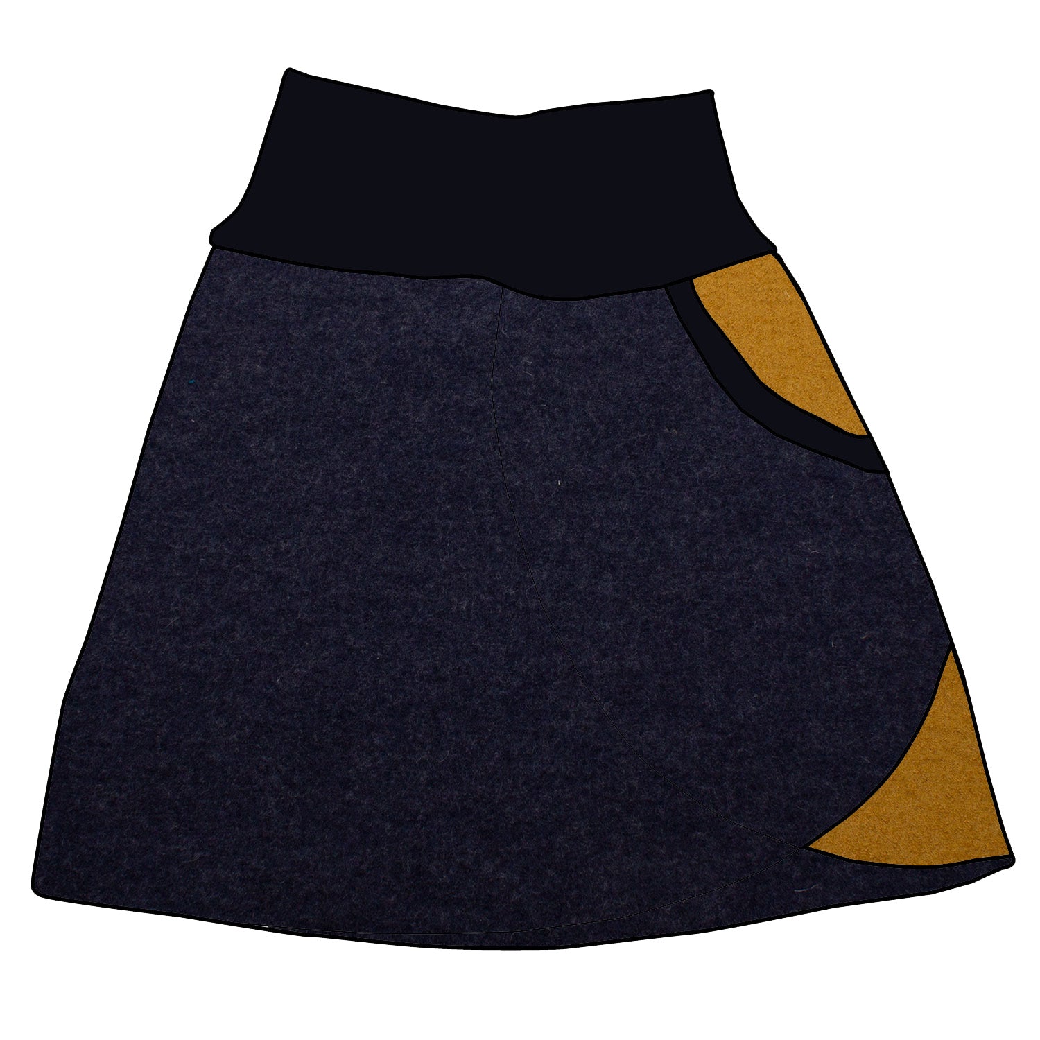 Damen Walkrock / falscher Wickelrock Walk Dunkelblau meliert / Senf