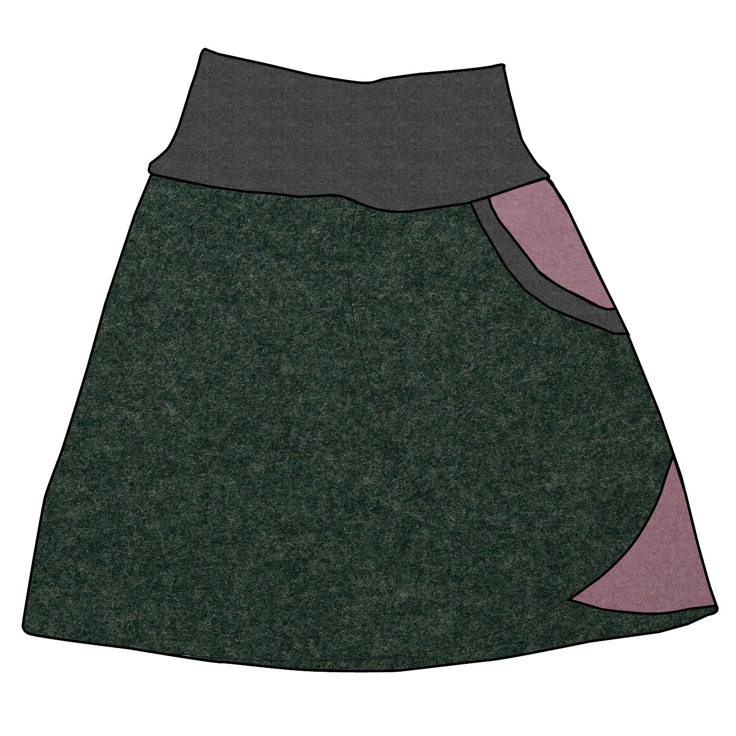Damen Walkrock / falscher Wickelrock Walk Dunkelgrün meliert / Altrosa