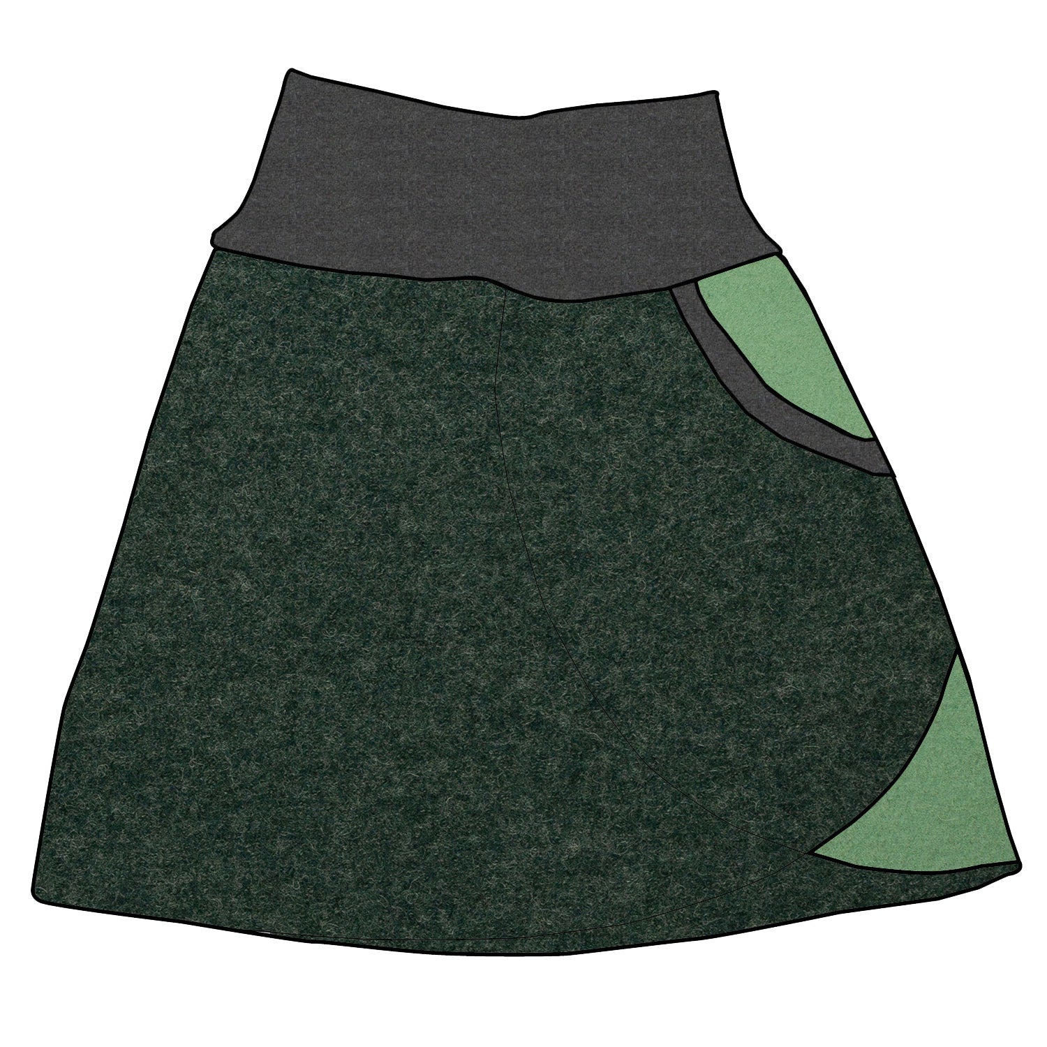 Damen Walkrock / falscher Wickelrock Walk Dunkelgrün meliert / Hellgrün