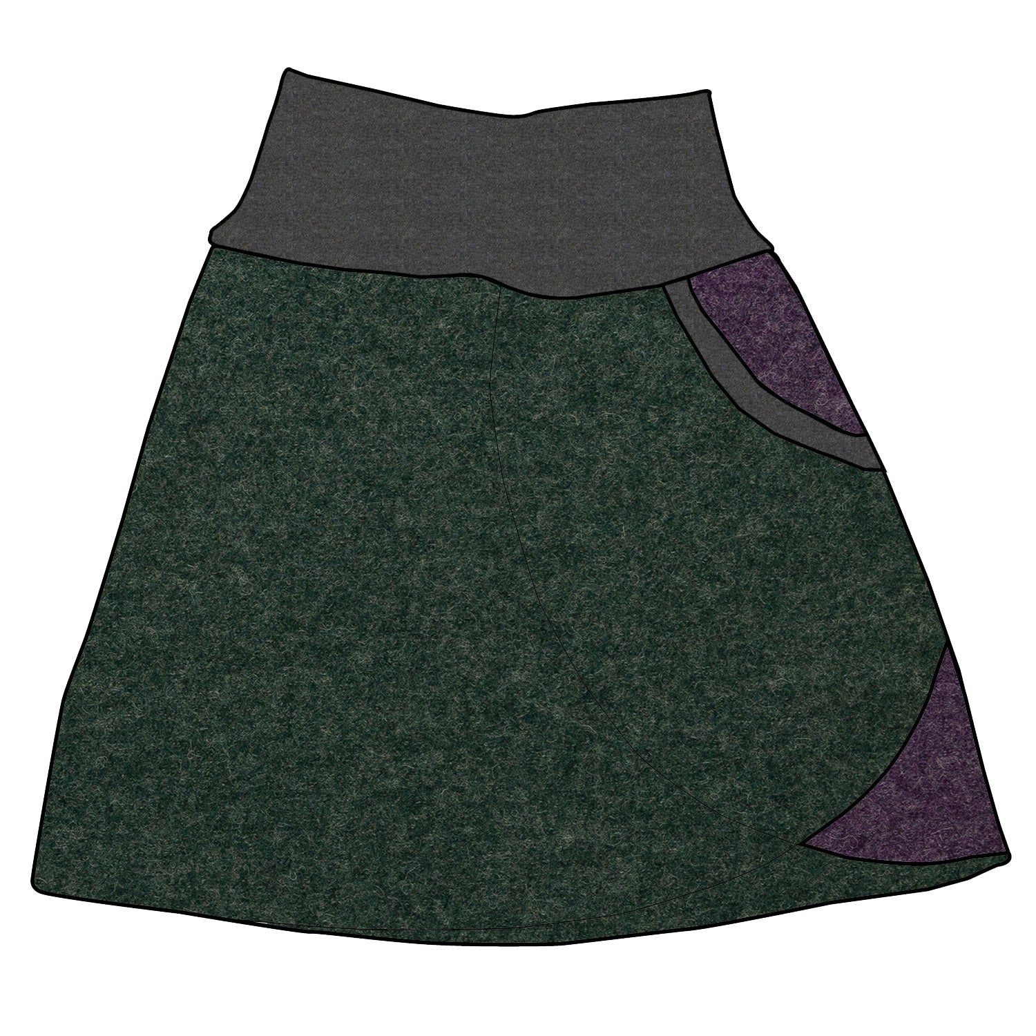 Damen Walkrock / falscher Wickelrock Walk Dunkelgrün meliert / Lila meliert