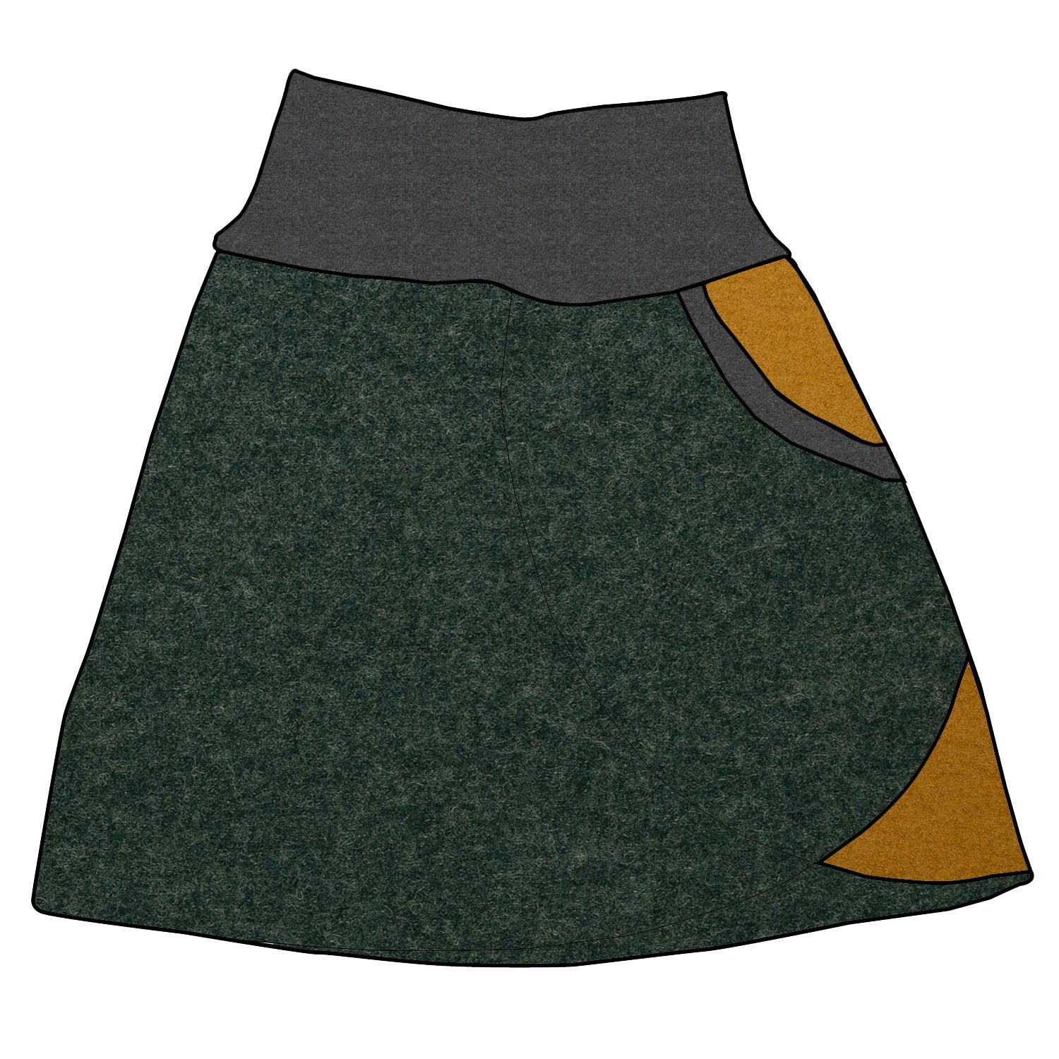 Damen Walkrock / falscher Wickelrock Walk Dunkelgrün meliert / Senf