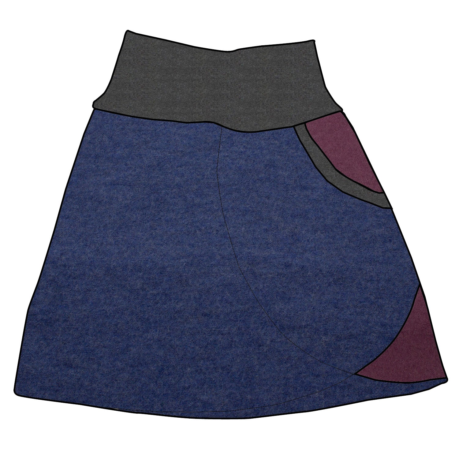 Damen Walkrock / falscher Wickelrock Walk Blau meliert / Beere