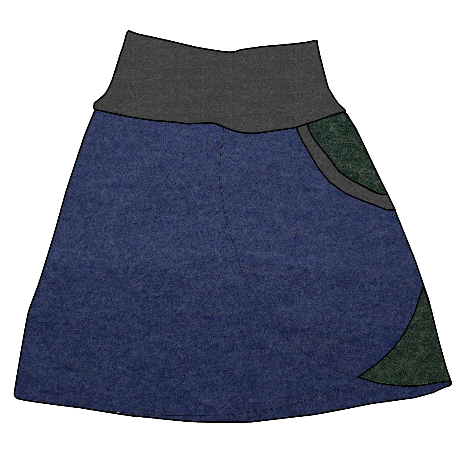 Der Wollwalkstoff reguliert die Wärme und macht den Rock ideal für Frühling, Herbst und Winter. Das elastische Bauchbündchen sorgt für eine perfekte Passform, ohne zu drücken. Der Rock sieht aus wie ein Wickelrock, wird aber ganz normal angezogen und bietet mit einer großen Tasche viel Platz für kleine Schätze oder unverzichtbare Wegbegleiter.