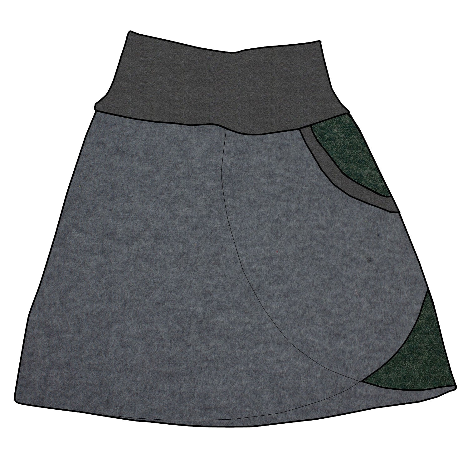 Damen Walkrock / falscher Wickelrock Walk Hellgrau meliert / Dunkelgrün meliert