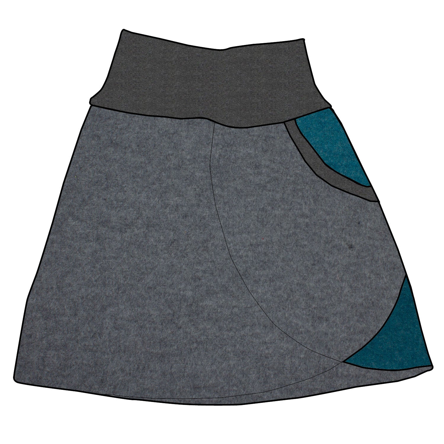 Damen Walkrock / falscher Wickelrock Walk Hellgrau meliert / Petrol meliert
