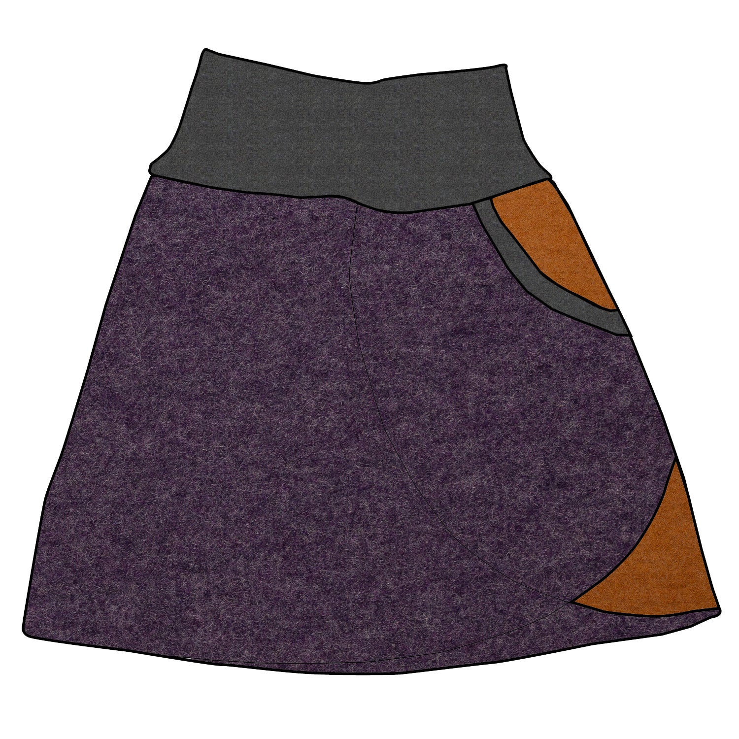 Damen Walkrock / falscher Wickelrock Walk Lila meliert / Ocker
