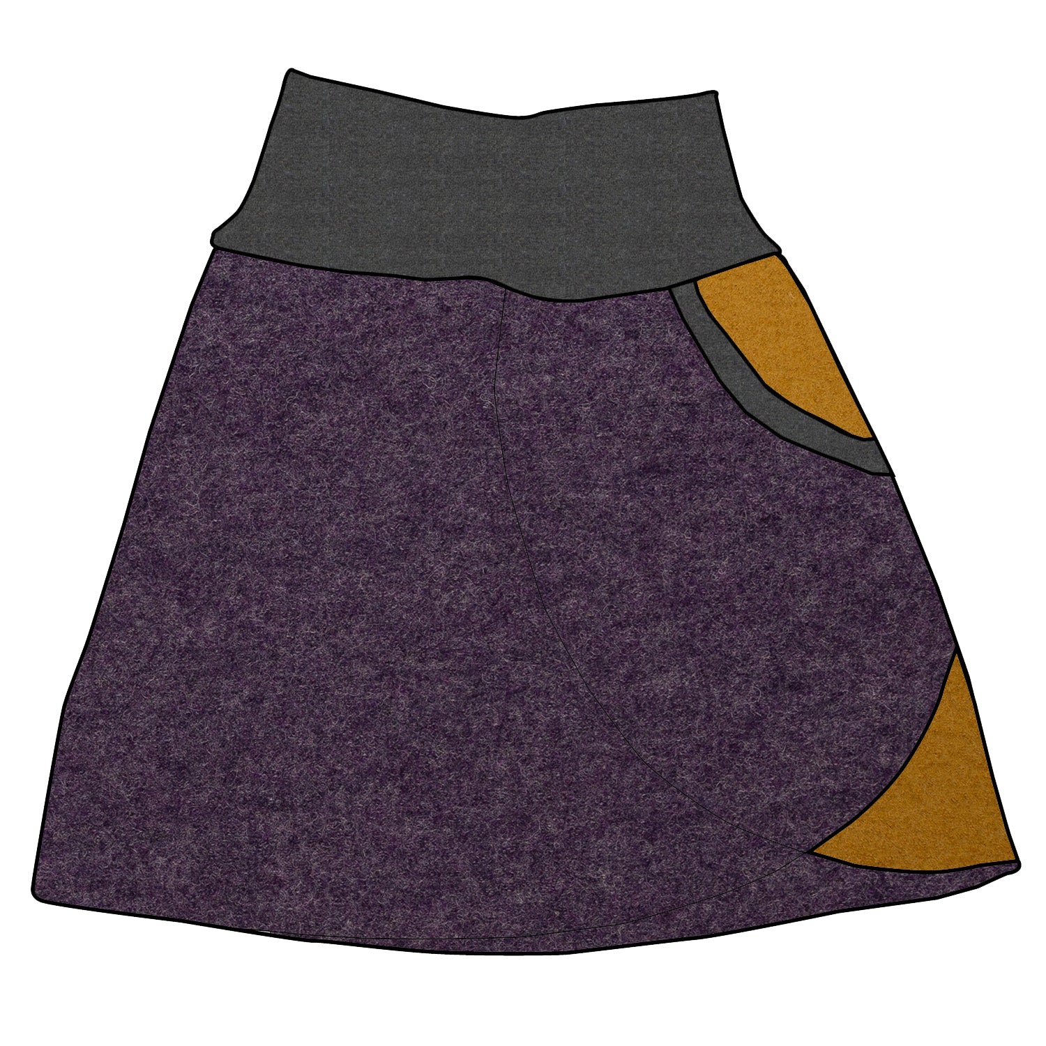 Damen Walkrock / falscher Wickelrock Walk Lila meliert / Senf