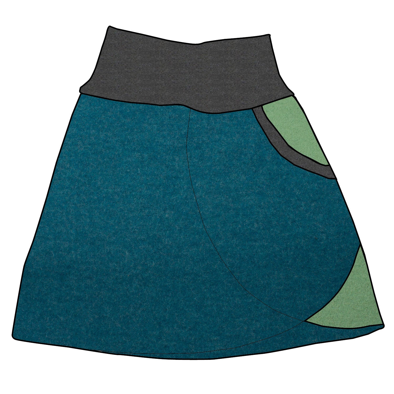 Damen Walkrock / falscher Wickelrock Walk Petrol meliert / Hellgrün