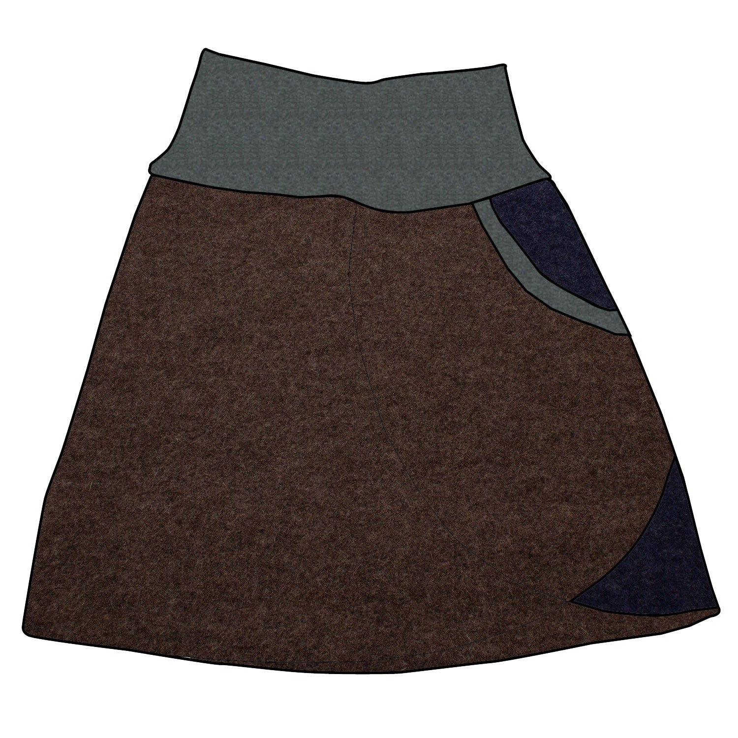 Damen Walkrock / falscher Wickelrock Walk Schlamm meliert / Dunkelblau meliert