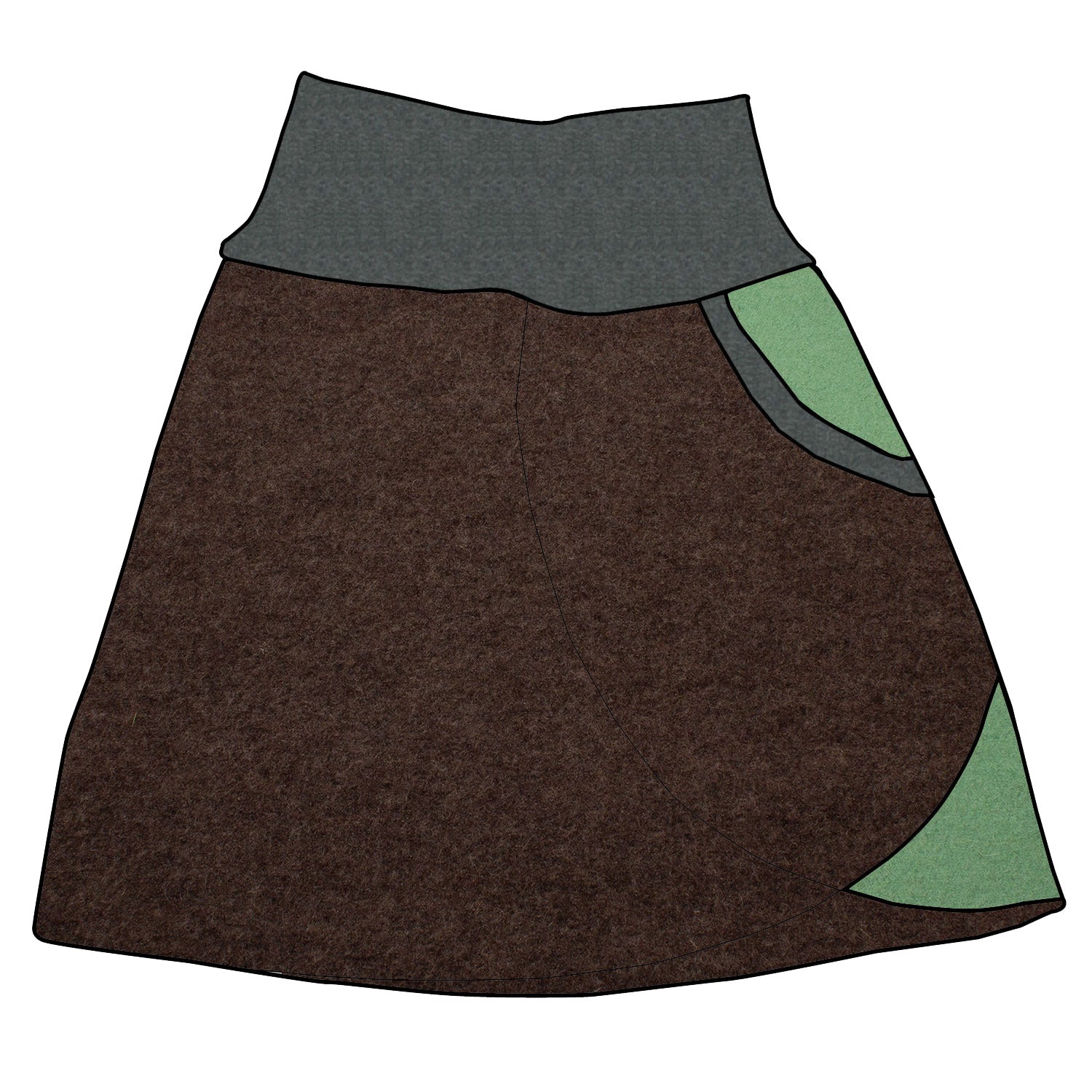 Damen Walkrock / falscher Wickelrock Walk Schlamm meliert / Hellgrün