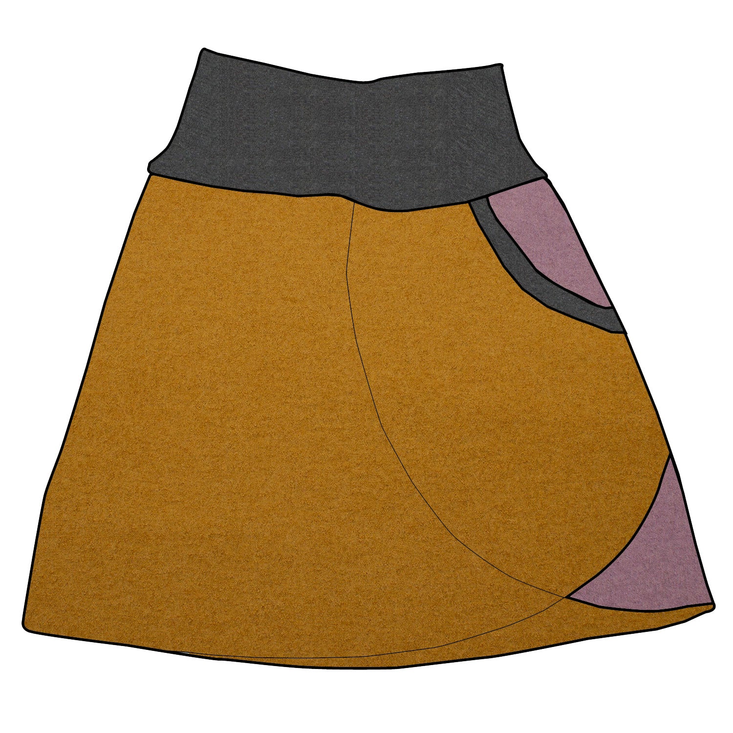 Damen Walkrock / falscher Wickelrock Walk Senf / Altrosa