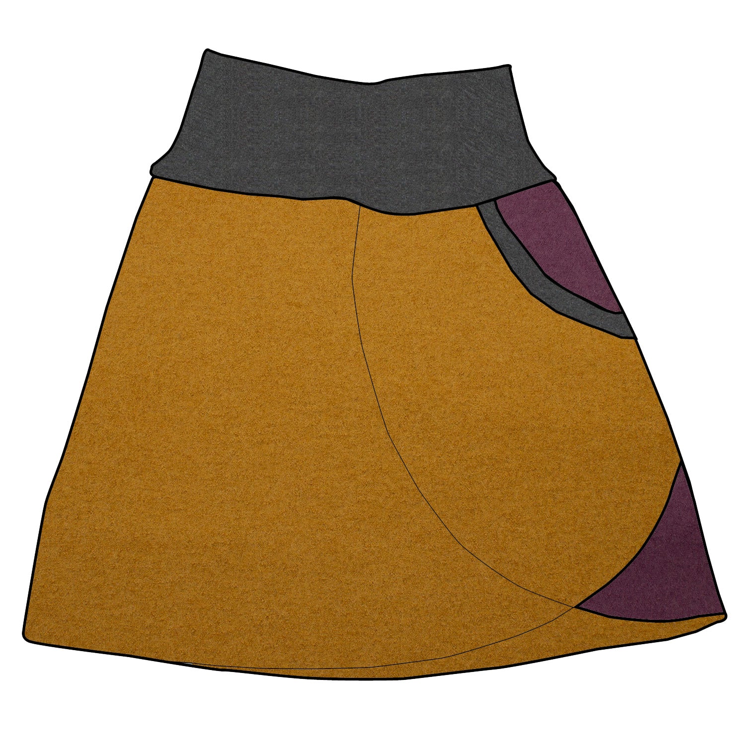 Damen Walkrock / falscher Wickelrock Walk Senf / Beere