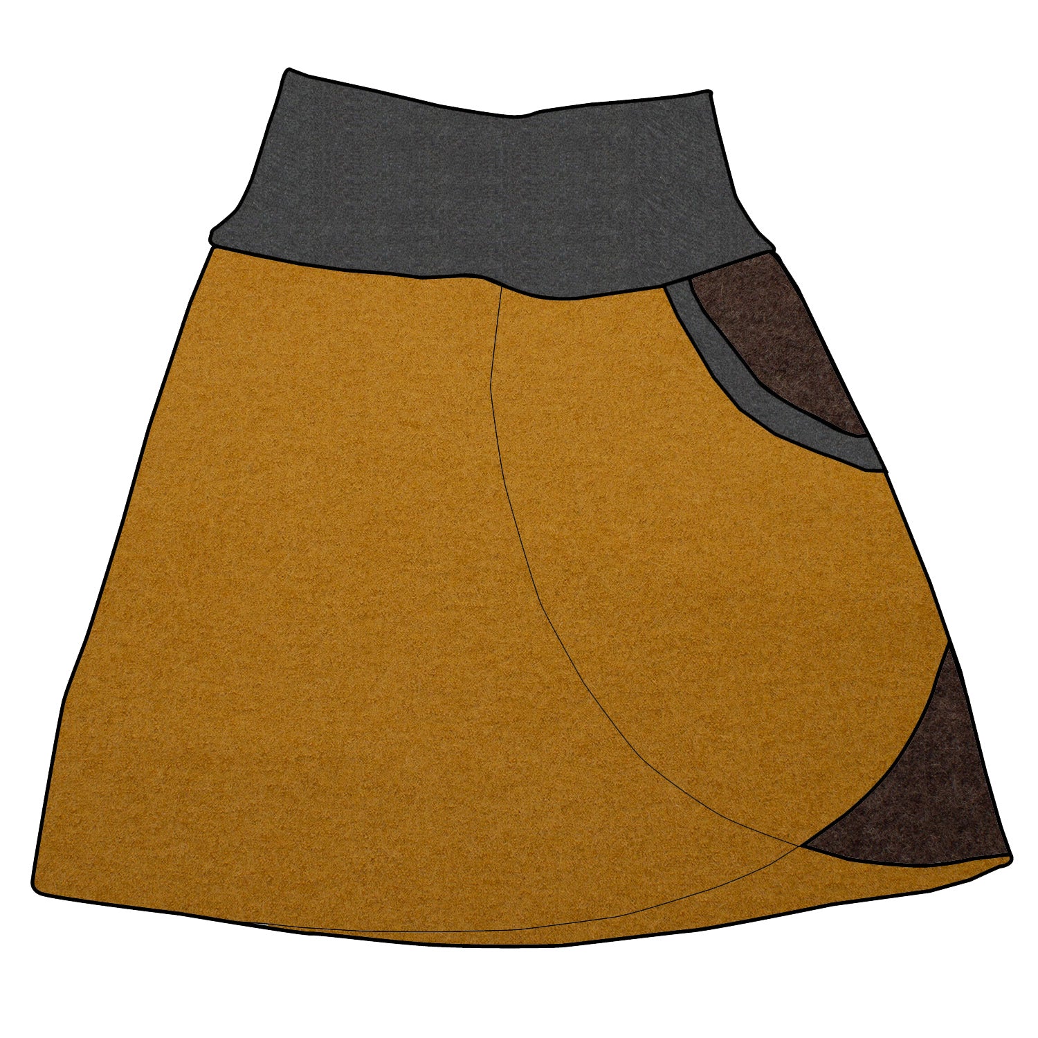 Damen Walkrock / falscher Wickelrock Walk Senf / Schlamm meliert