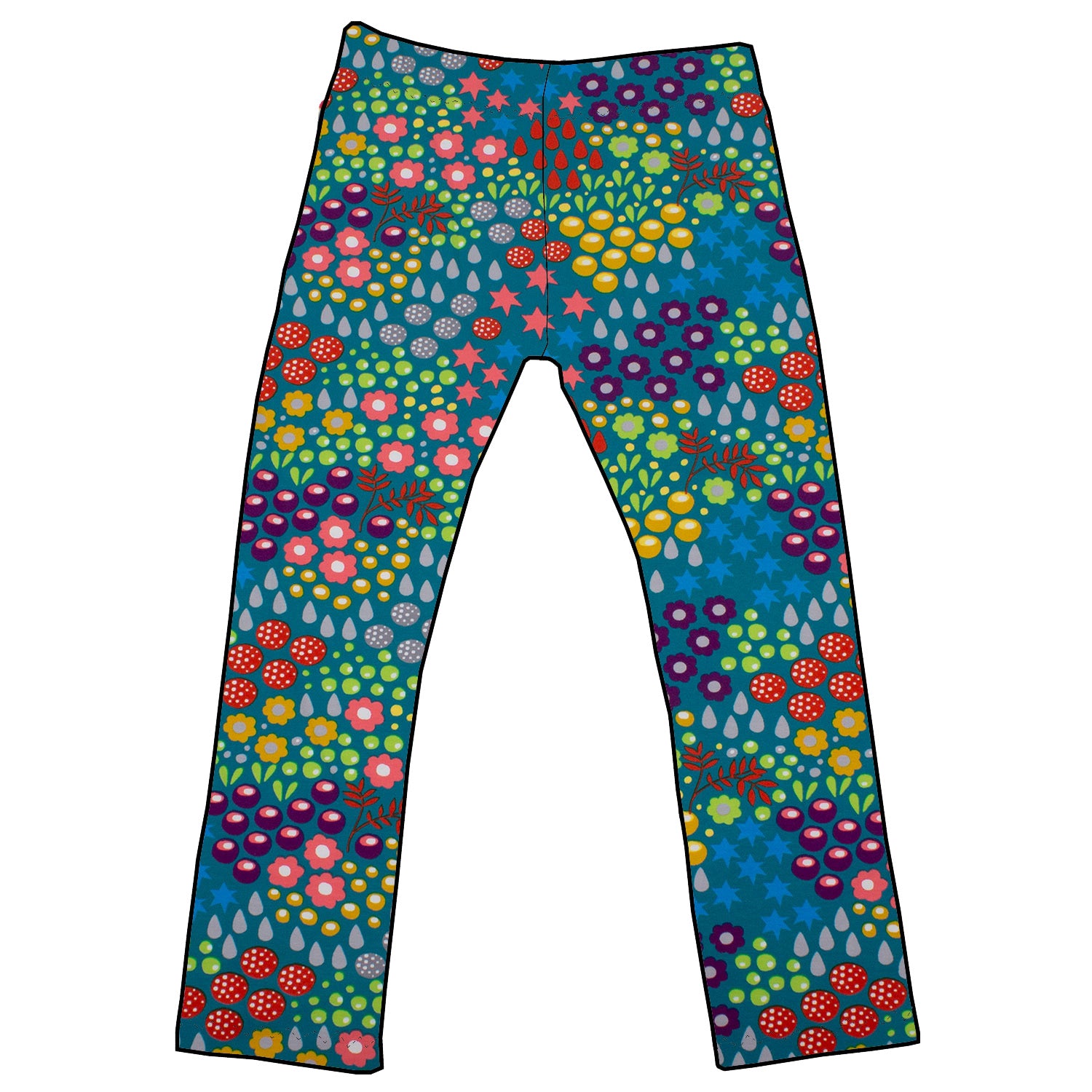 Damen Leggings Skinny Hose Retro Blumenwiese türkis