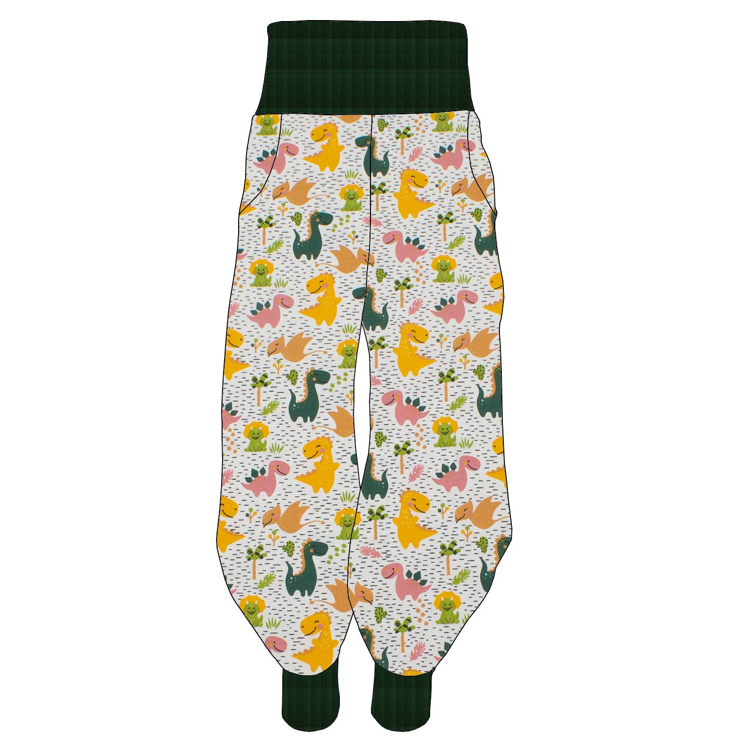 Die Pumphose war aus weichem Jerseystoff und fühlte sich an wie eine zweite Haut. Sauri konnte ohne Einschränkungen durch die Bäume springen und über Felsen klettern. Die Hose passte perfekt, war warm genug für den kühlen Morgen und trotzdem leicht und luftig für den restlichen Tag. Mit ihren süßen Dinosaurier-Motiven und der tollen Rosa-Farbe war sie nicht nur bequem, sondern auch ein echter Hingucker! Außerdem konnte Sauri die Pumphose ganz nach seinen eigenen Vorstellungen gestalten – ob mit oder ohne Taschen, alles war möglich. Und da MiMaMäuschen die Hose individuell anfertigte, wusste er, dass seine Pumphose einzigartig war.