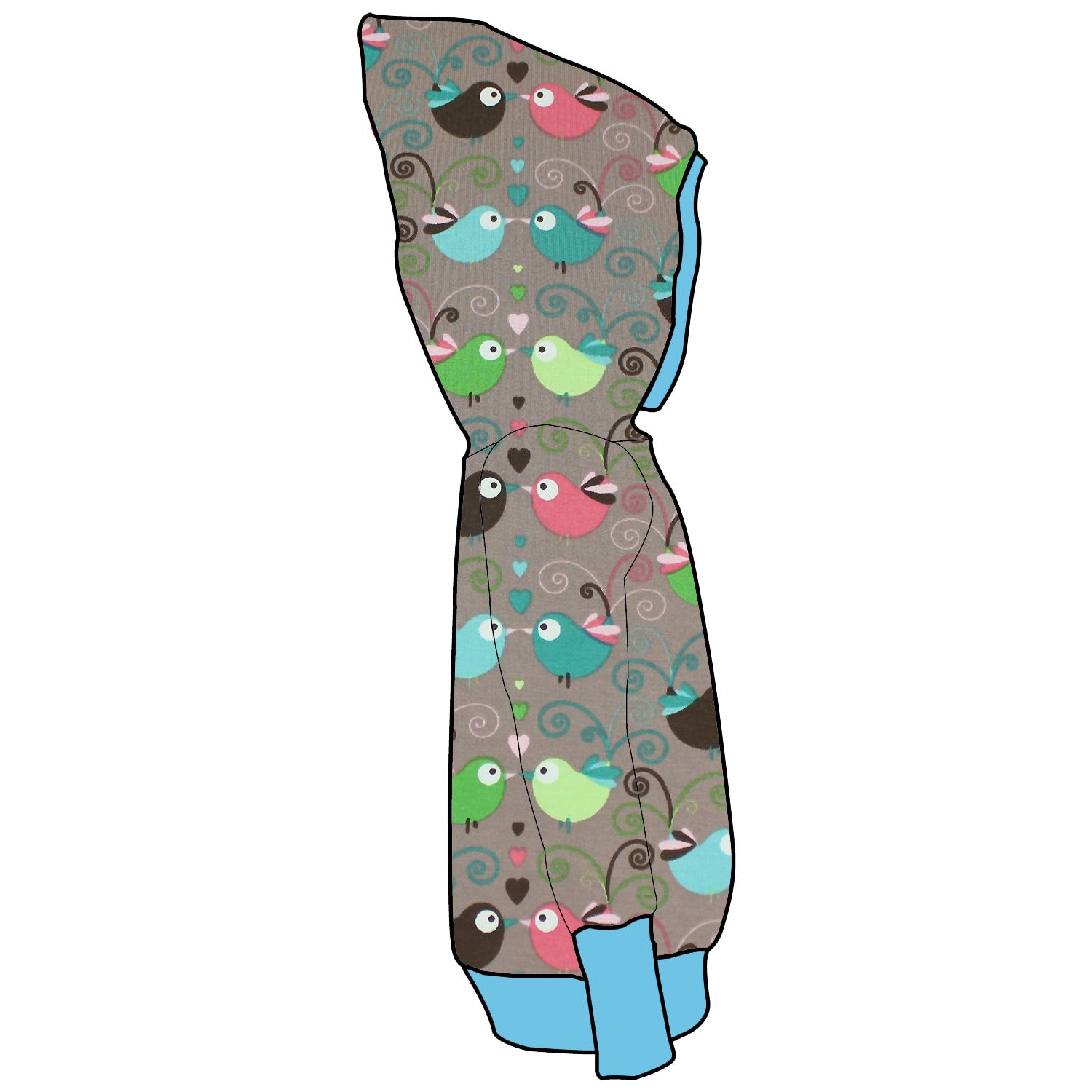 Es war ein schöner Frühlingstag, als Mia ihren neuen Damen Retrohoodie mit den bunten Vögeln anzog. Der Jerseystoff war weich und gemütlich, perfekt für die warmen Sonnenstrahlen. „Heute gehe ich auf ein Abenteuer!“, rief sie begeistert und lief in den Garten.