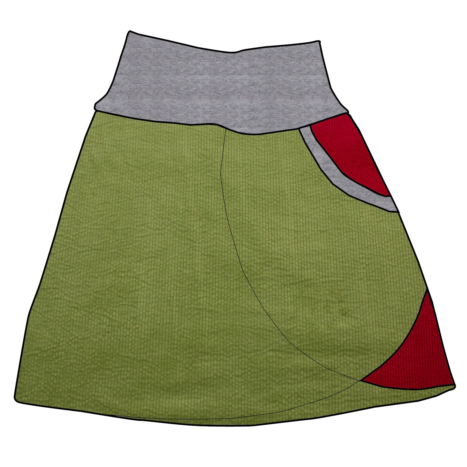 Kinder Cordrock / falscher Wickelrock Cord Apfelgrün / Rot