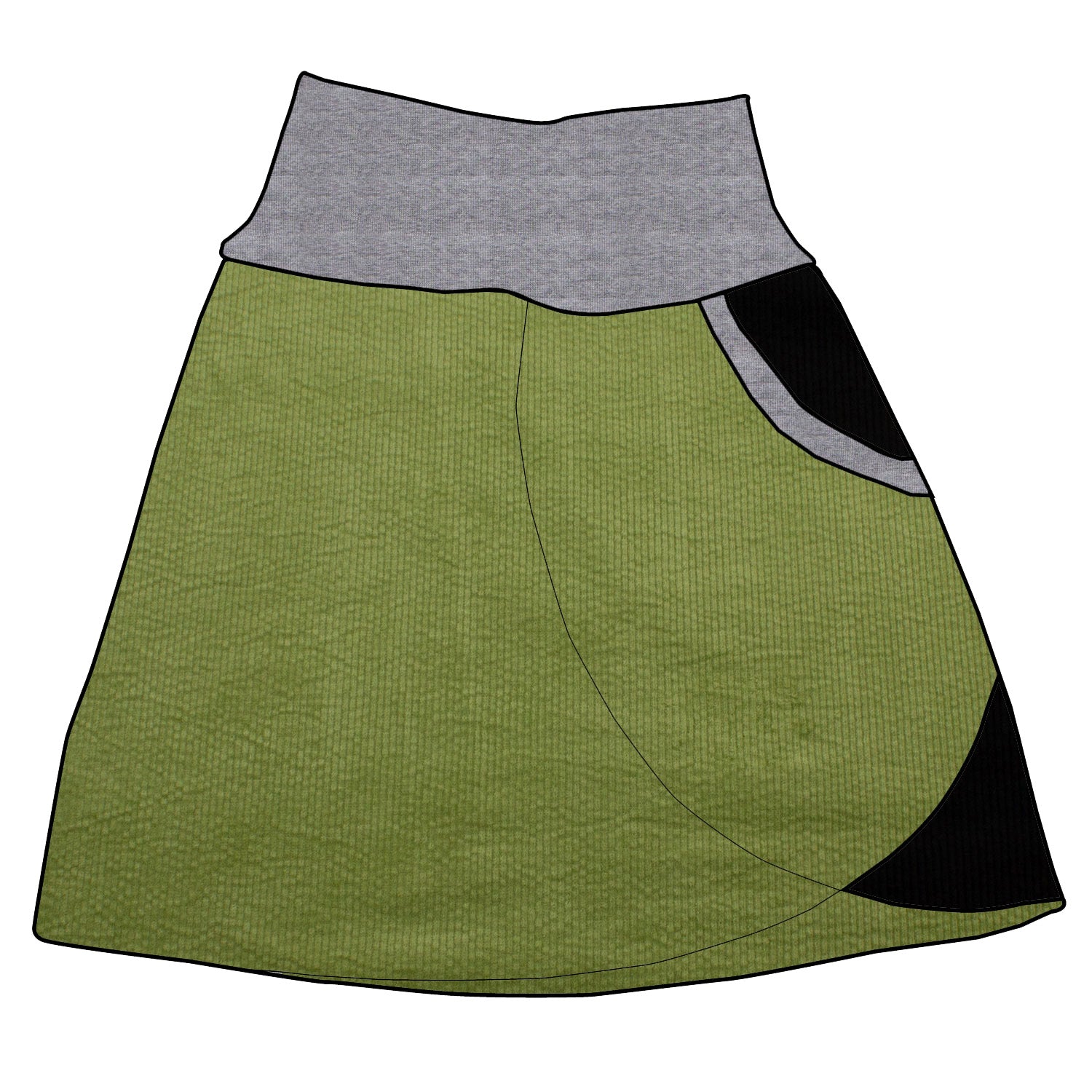 Kinder Cordrock / falscher Wickelrock Cord Apfelgrün / Schwarz