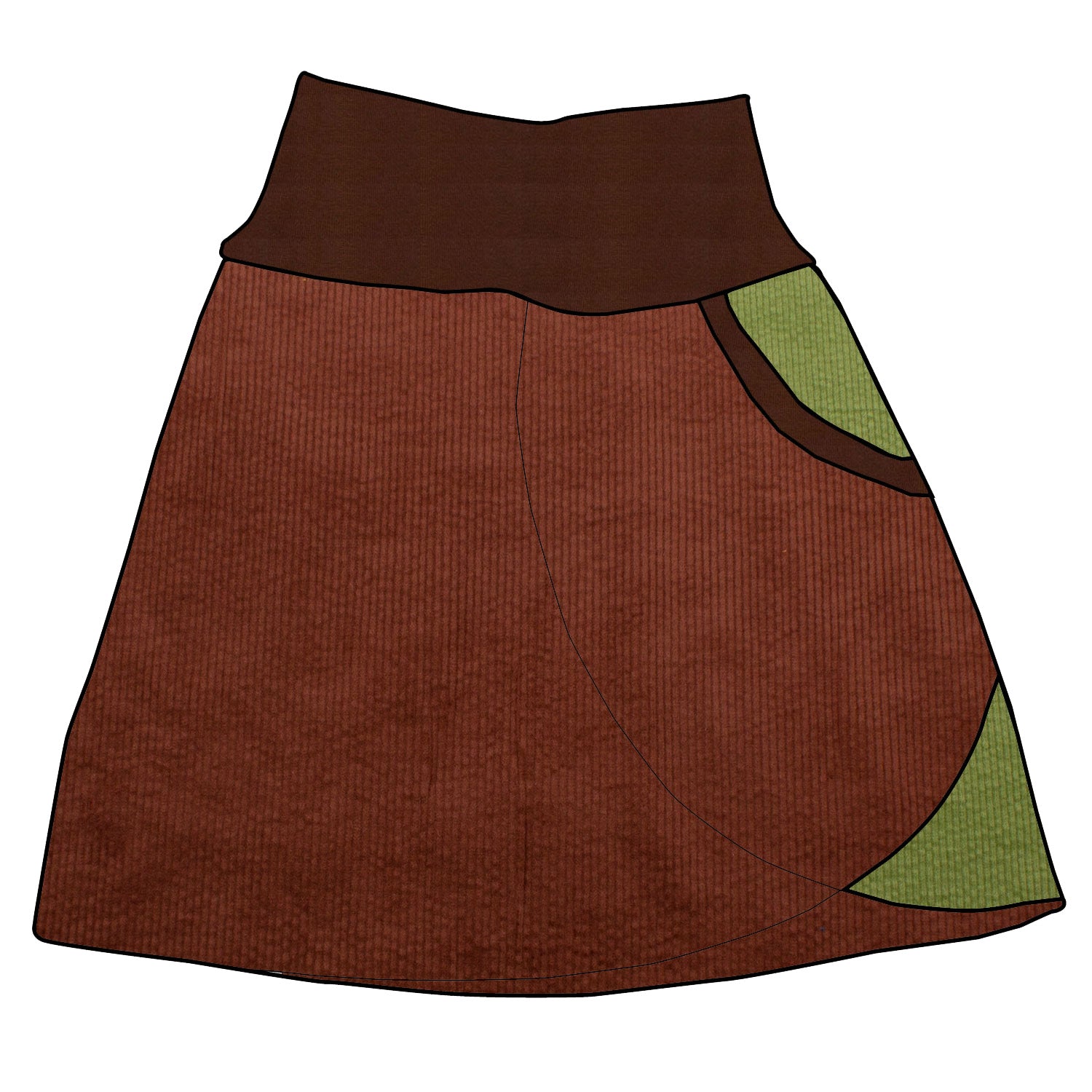 Kinder Cordrock / falscher Wickelrock Cord Braun / Apfelgrün