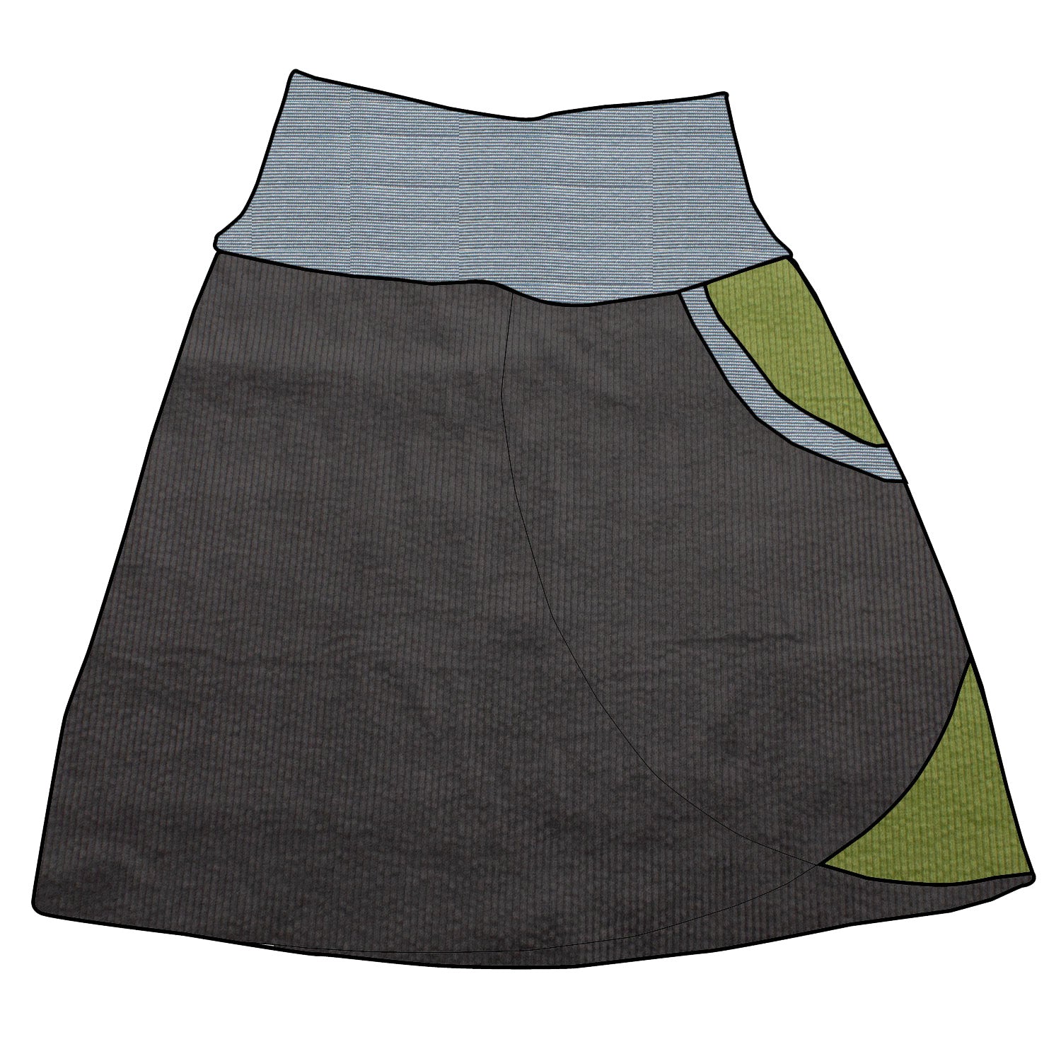 Kinder Cordrock / falscher Wickelrock Cord Dunkelgrau / Apfelgrün